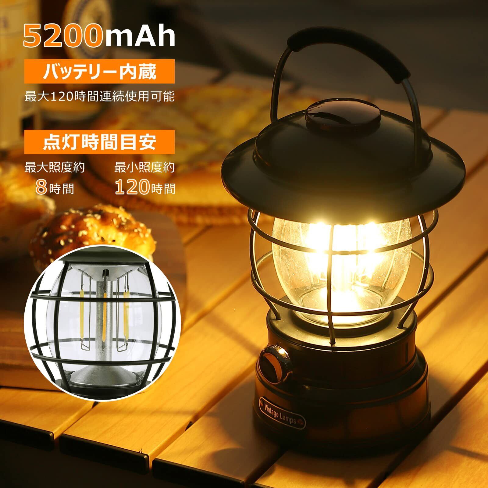 【数量限定】Litake LED ランタン 充電式 レトロ ledランタン 無段階調光 3色切り替え 5200mAh 600lm 120時間点灯