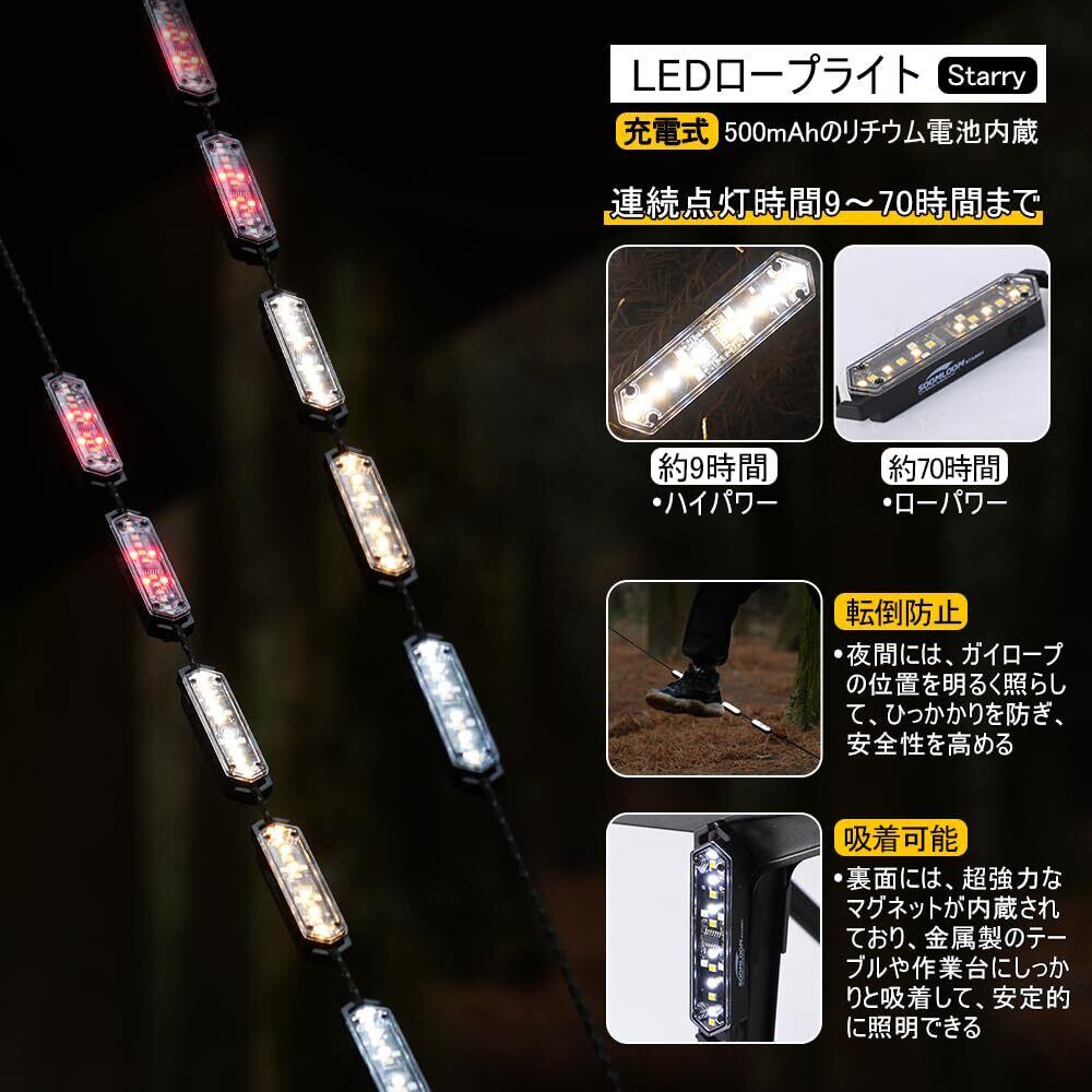 【新着商品】SoomloomガイロープLEDライトStarry充電式9-70H長時間連続点灯照明転倒防止視認性向上ランプ防水軽量雰囲気作り磁石内蔵USBType-Cキャンプアウトドア夜間テントタープ設営ロープLEDランプ
