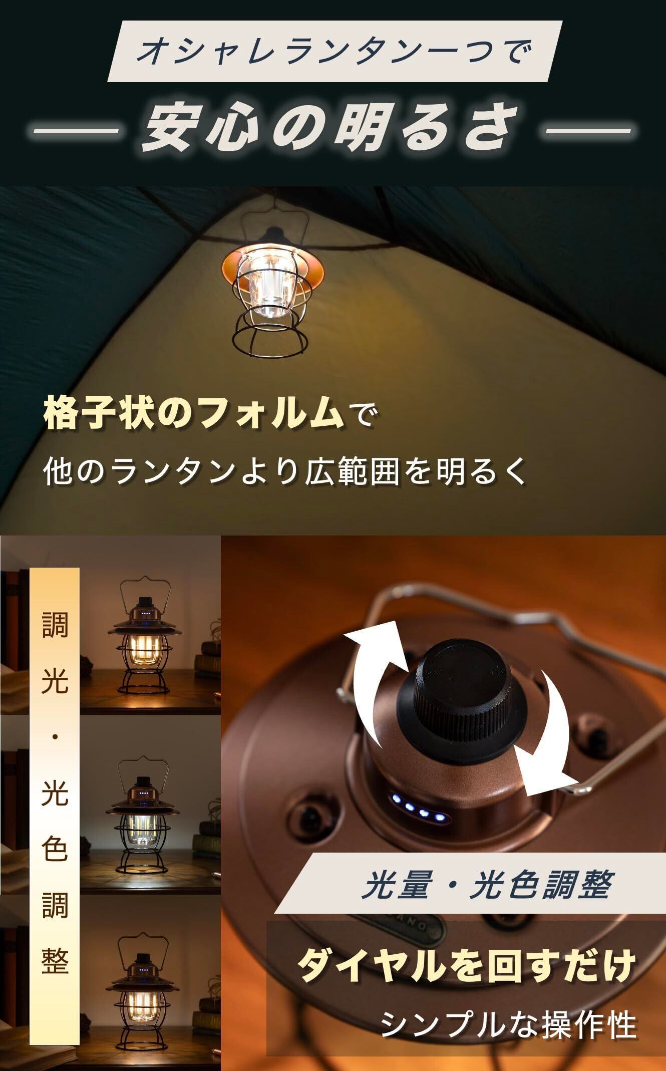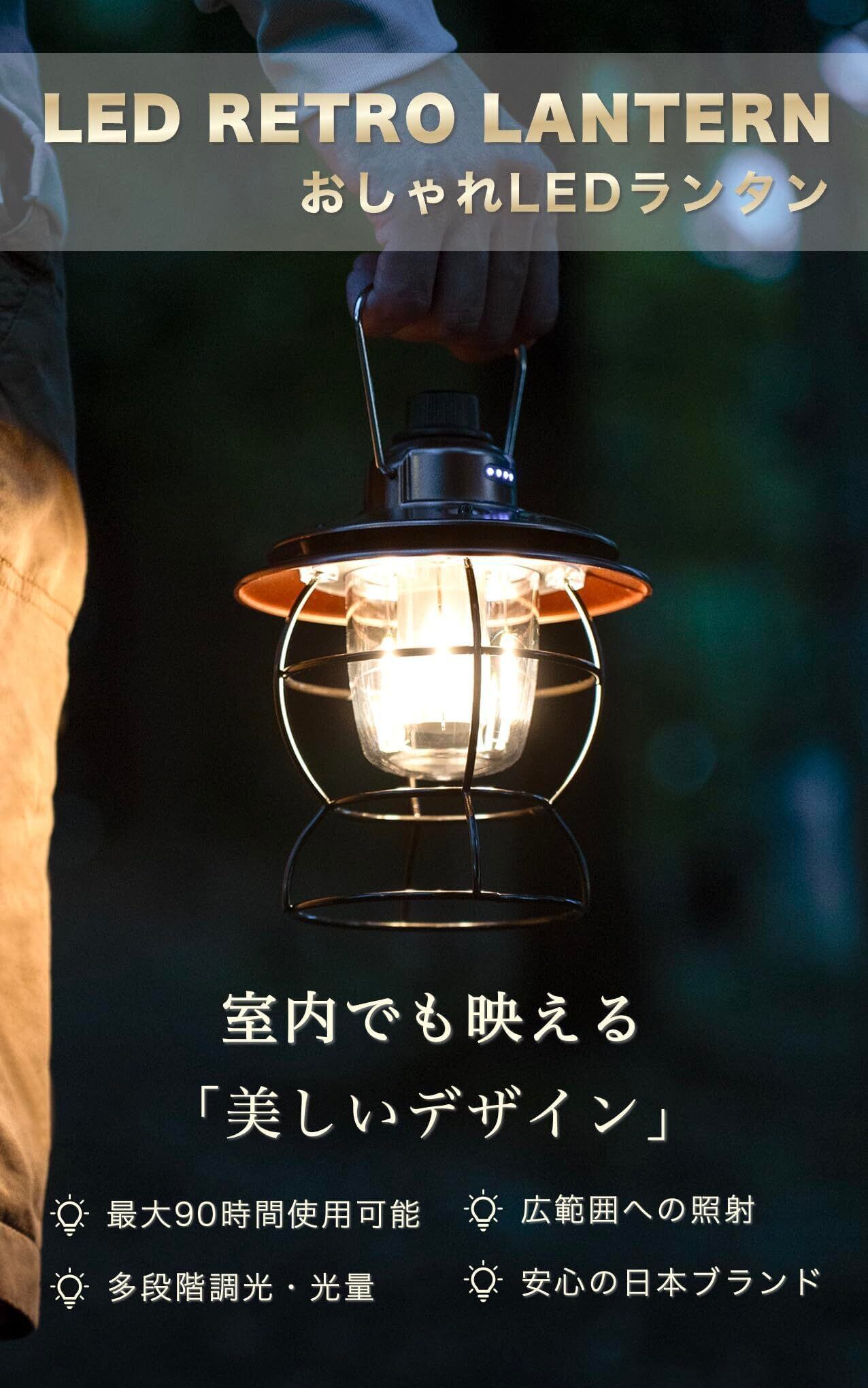 【新着商品】ランタン LED 【実用性×高いデザイン性】 充電式 オシャレ レトロ キャンプ アンティーク風 明るい 広角 防災 防水 キャンプ 釣り 非常用 停電 神奈川県発ブランド Cercano (セルカノ)