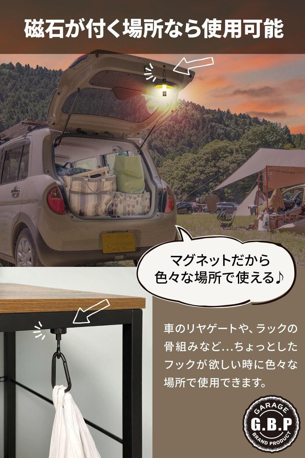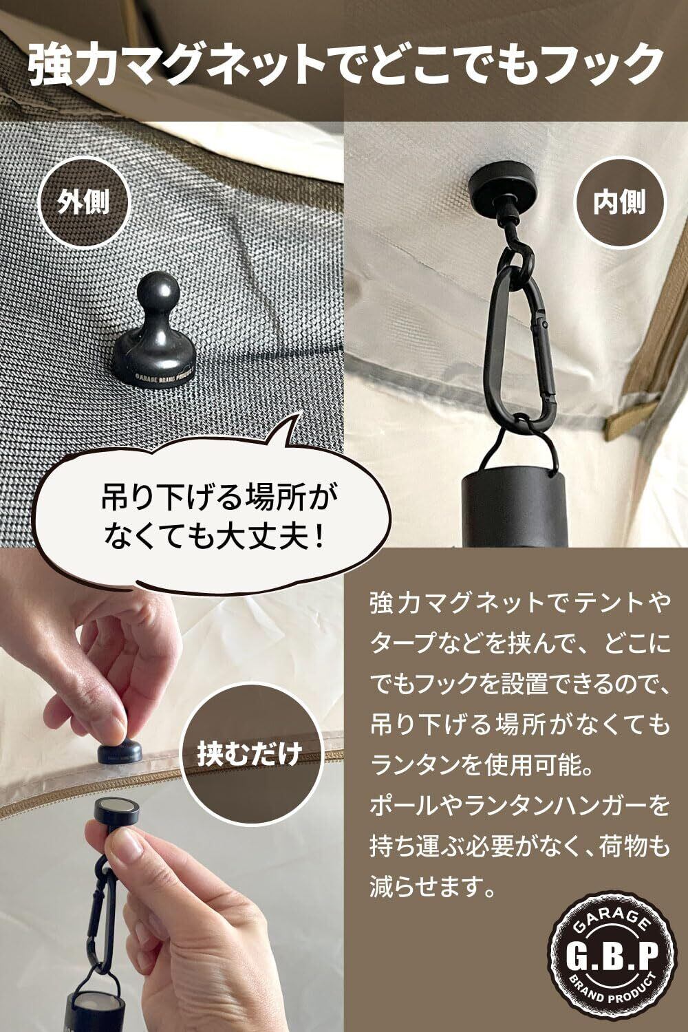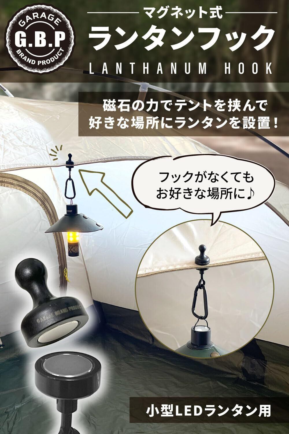 【現役キャンパー監修】[Garage Brand Product] ランタンフック マグネットフック ランタン フック [強力磁石xキャンプやBBQでのテントやタープに!!] (2個)