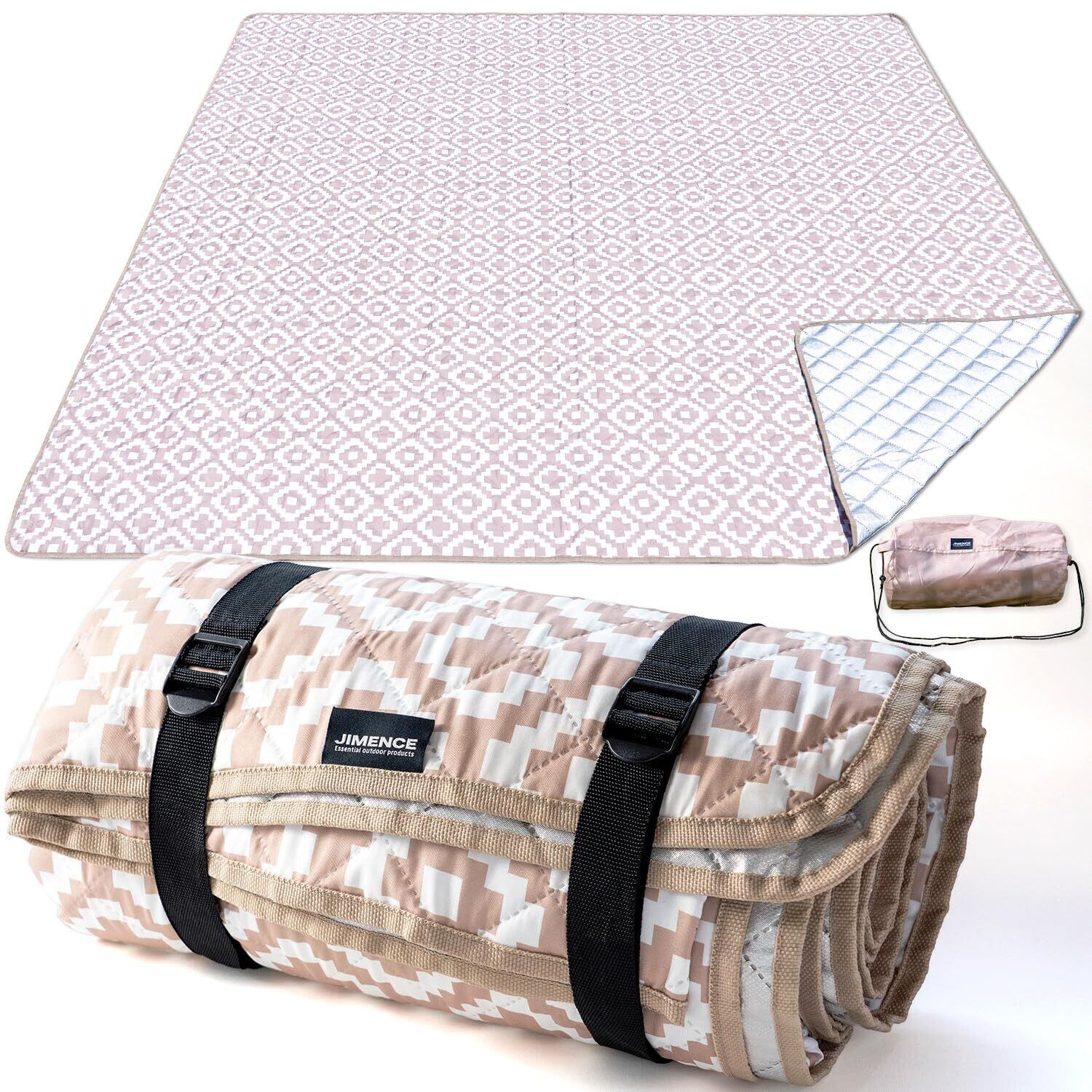 JIMENCE(ジーメンス) レジャーシート 厚手 大判 テントマット 防水 インナーシート アルミ蒸着 収納袋付き 200×200cm (ベージュ柄)