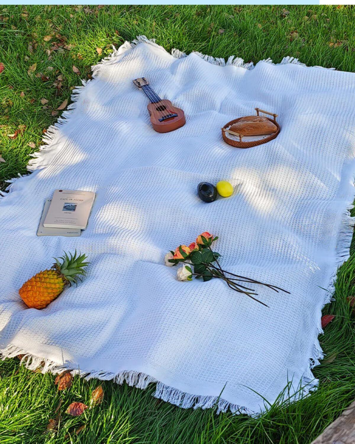 【2025最新】レジャーシート ピクニックシート ピクニックマット 布製 1人~4人用 折りたたみ おしゃれ キャンプ ブランケット picnic mat コンパクト B (ホワイト, 130cm×180cm)