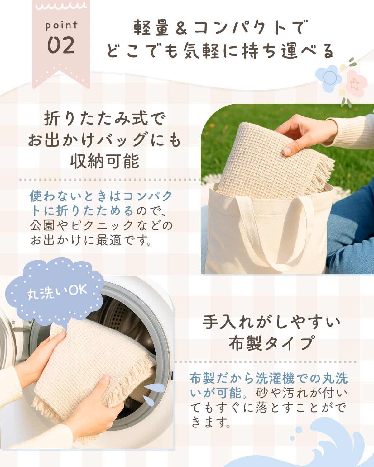 【高品質素材だから長持ちする】肌に優しい高品質素材を使用し、柔らかで心地よい手触りを実現。お手入れも簡単で、洗濯機で手軽に洗えるため、いつでも清潔に保つことができます。