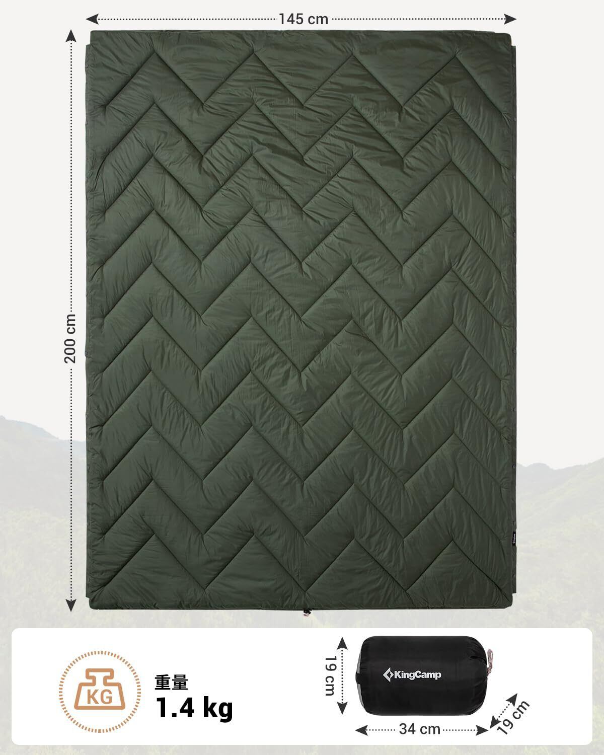 ■【大判サイズで多用途!】このKingCampのブランケットは、200×145cmの大きさで、大人2人をしっかりと包み込むことができます。キャンプや車中泊はもちろん、自宅やオフィスでの冷房対策など、あらゆるシーンで活躍するマルチブランケットです。