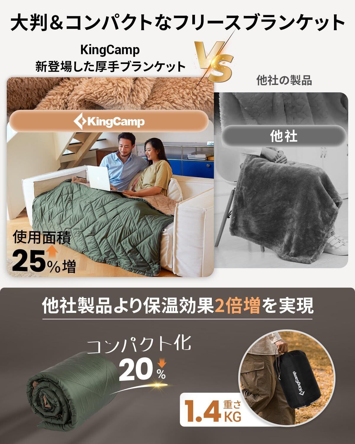 KingCamp ブランケット キャンプ フリース マルチブランケット 寝袋変形可能 200×145cm 大判 連結可能 防寒 保温 軽量 コンパクト 車中泊 防災 アウトドア カーキ/オリーブ
