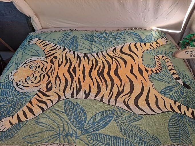 ■【おしゃれなデザインで空間を引き立てる!】タイガー柄の独自のデザインは、おしゃれさを演出し、使用するたびに空間の雰囲気をアップグレードします。キャンプやバンライフの雰囲気を一層引き立てるアイテムです。