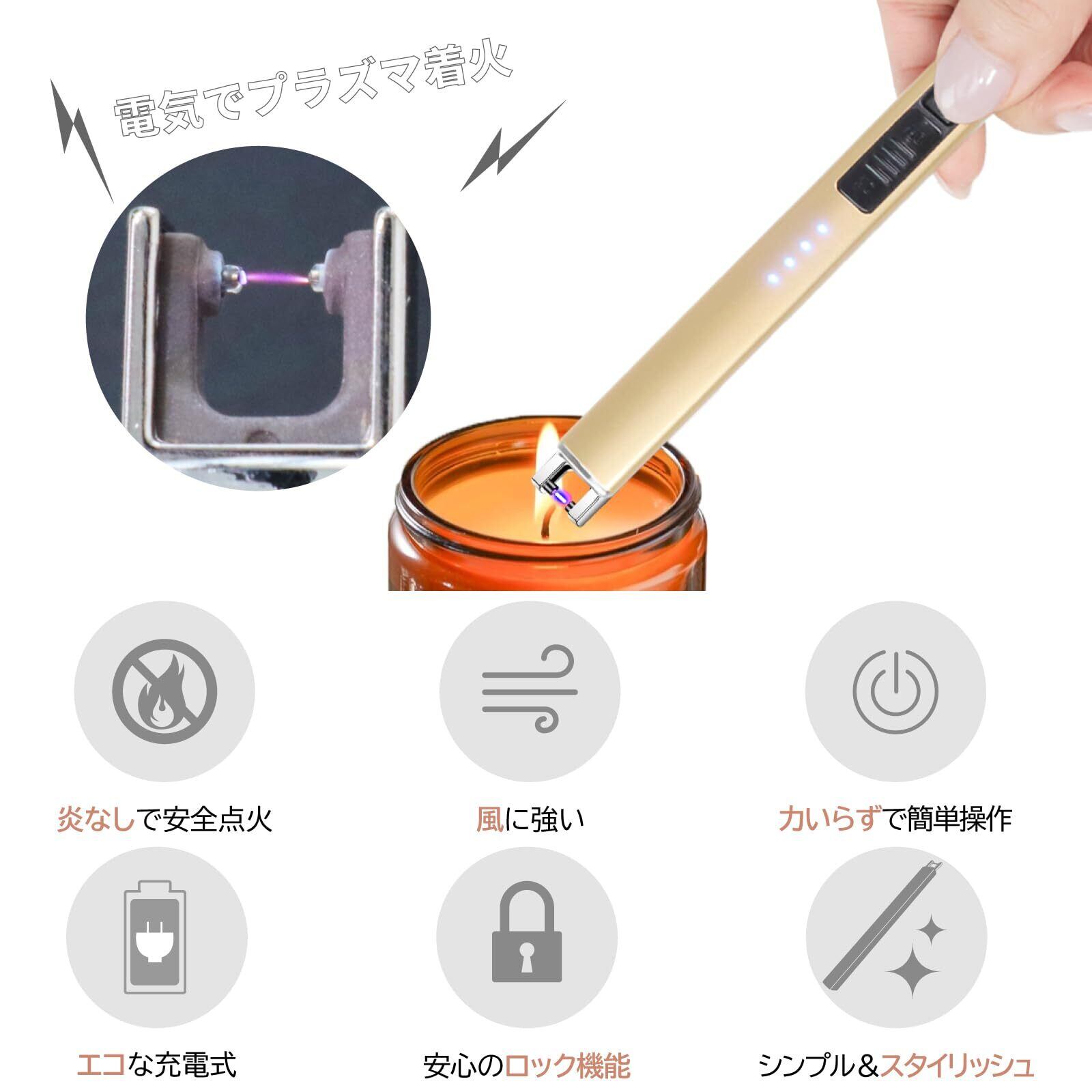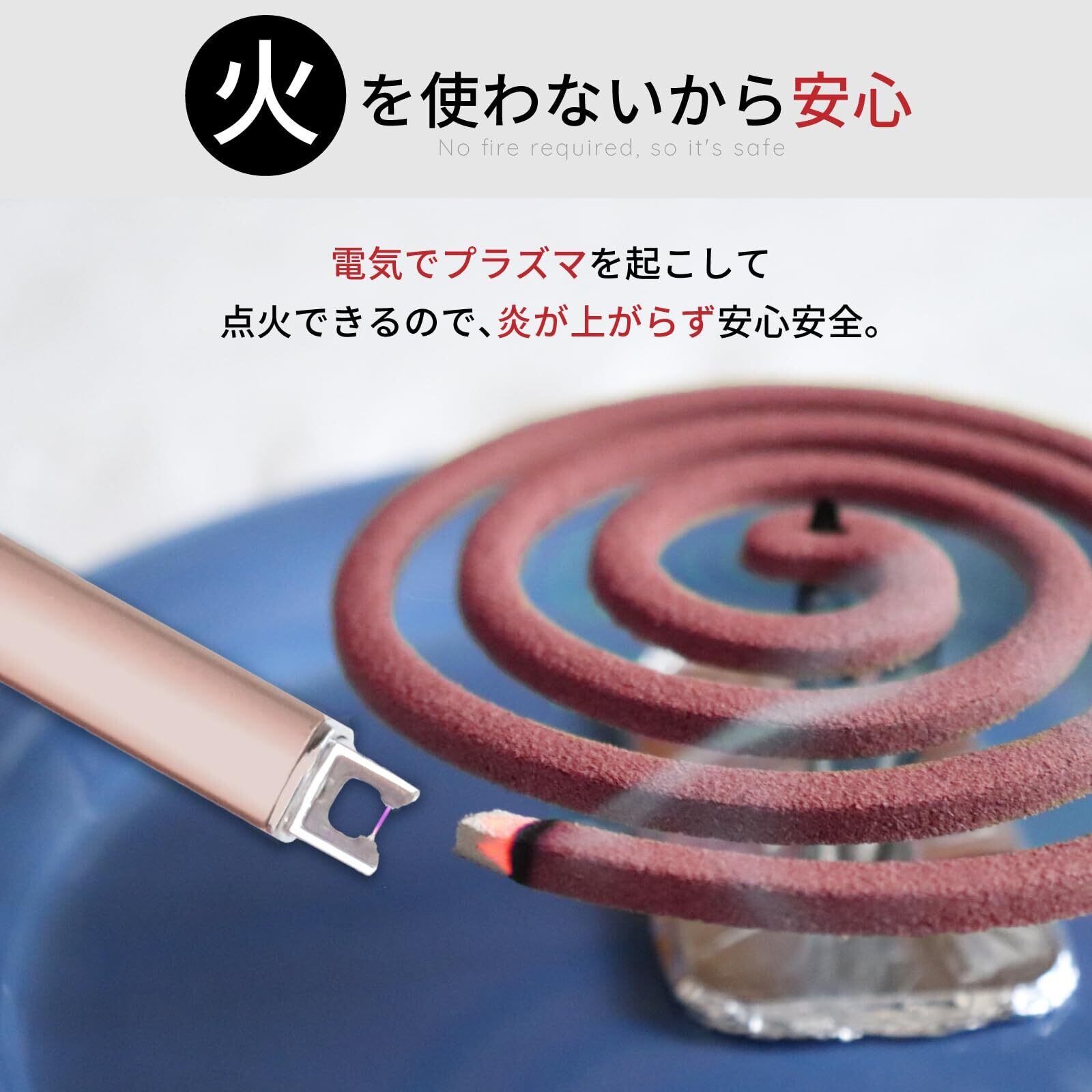 電子ライター 充電式 プラズマライター usb充電式 線香着火器 ライター 電気アーク 火起こし BBQ アロマキャンドル ロウソク 蚊取り線香 仏壇 お墓参り 花火 アウドドア (ローズゴールド)