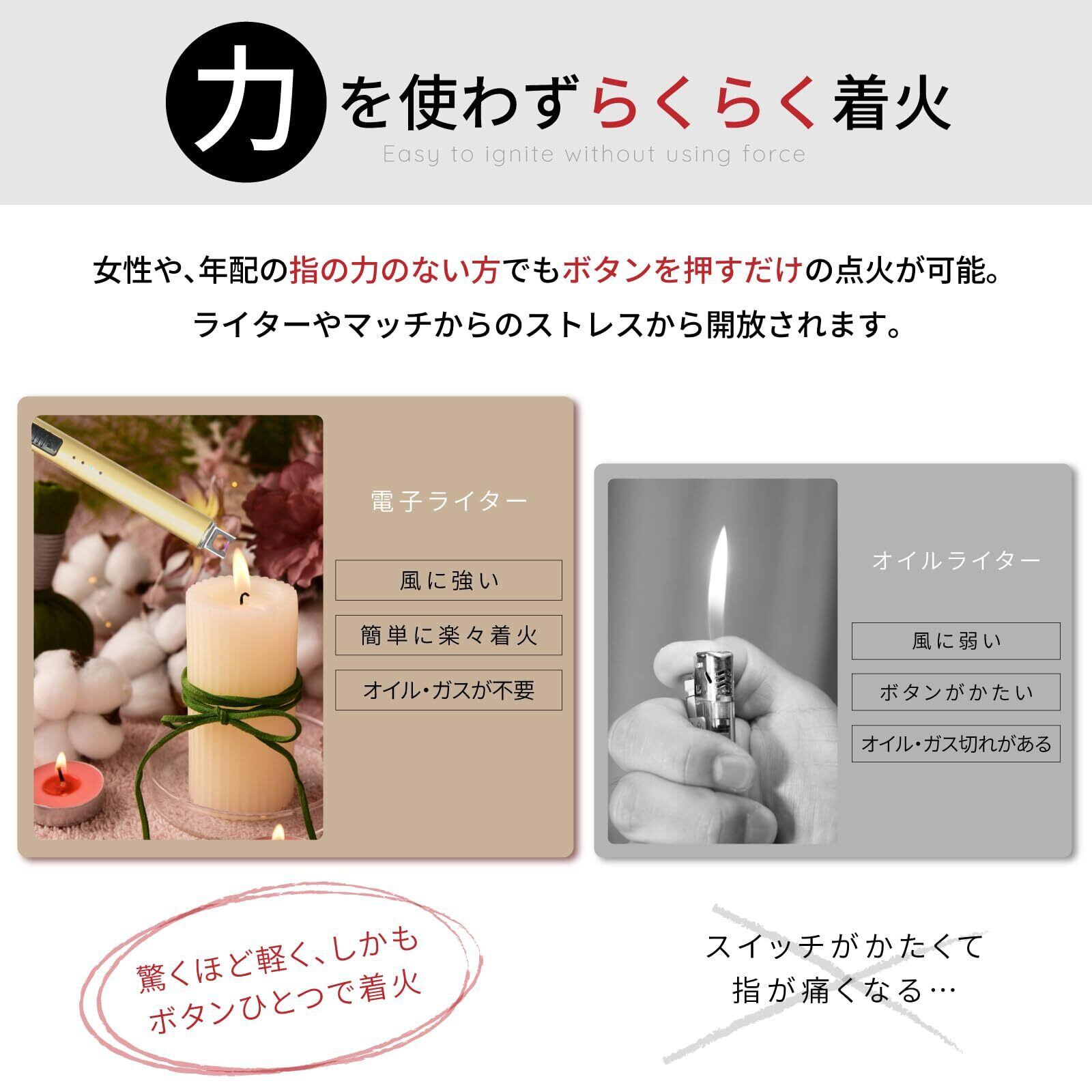 【力を使わずらくらく着火&多用途対応】指の力が弱い女性や年配の方でもボタンを押すだけで簡単に点火でき、キャンドル・線香・アウトドア・バーベキュー・花火など、風の強い屋外でも安心して使える万能タイプです。