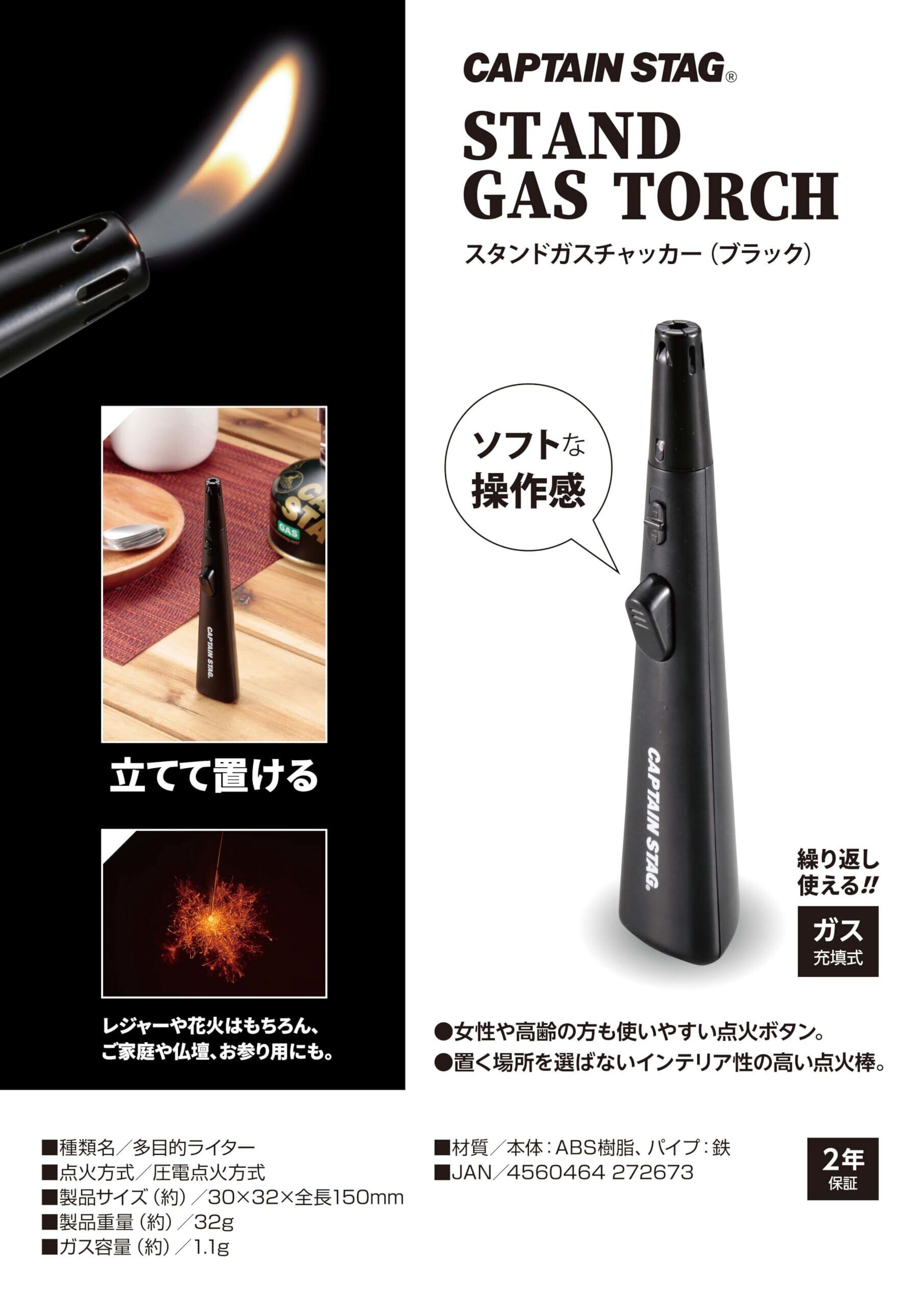 キャプテンスタッグ(CAPTAIN STAG) ライター 着火 スタンド ガスチャッカー ガス充填式 2年 ブラック UF-24