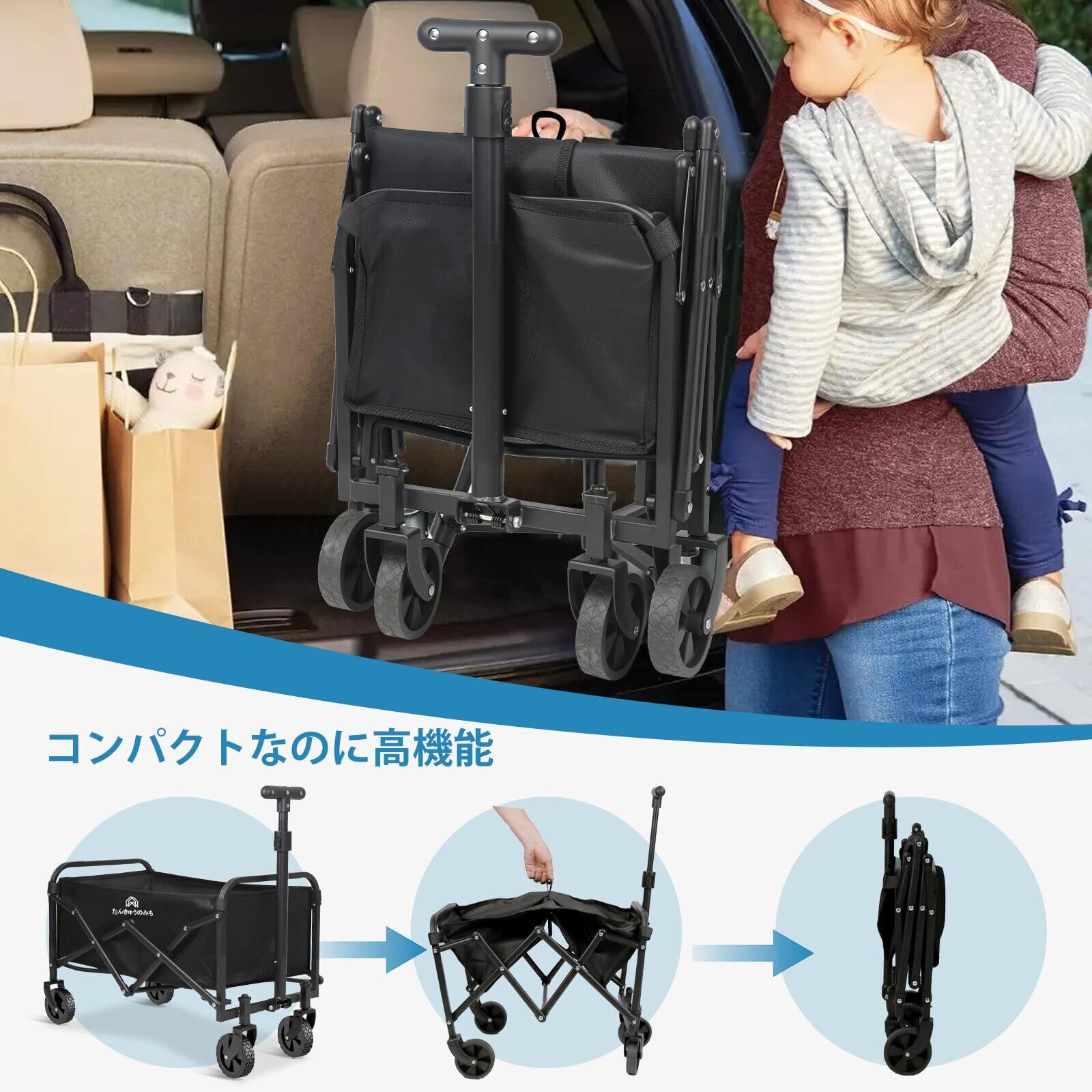 キャリーワゴン キャリーカート アウトドアワゴン ミニ 超軽量3.3kg 大容量40L 耐荷重60kg タイヤ取り外し可能 キャンプカート 折りたたみ 小型 ワンタッチ展開&自立収納 アウトドア 荷物運び 買い物 イベント 引っ越し (ブラック)