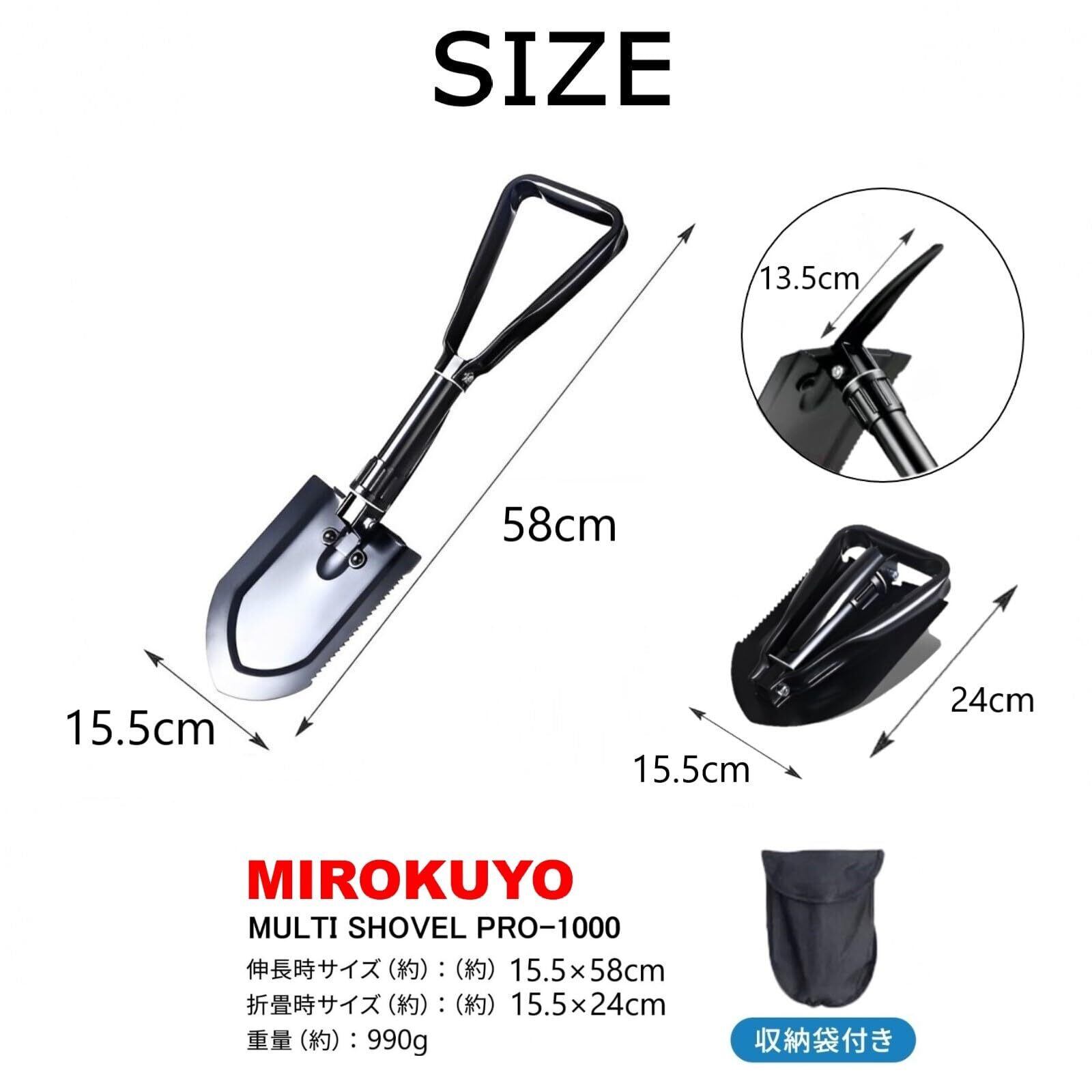 【仕様】 サイズ(約):幅 15.5cm 長さ 58cm (折り畳み時:横 15.5cm 長さ 24cm) 重量(約):990g 材質:高炭素鋼 カラー:ブラック