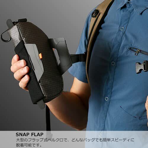 小さくて頼もしいヤツ スナップは、バックパックのショルダーハーネスにつけるポーチ。 手軽に脱着できるのが特徴で、スマホ・財布・カメラなどの欲しい装備に素早くアクセスできる設計です。