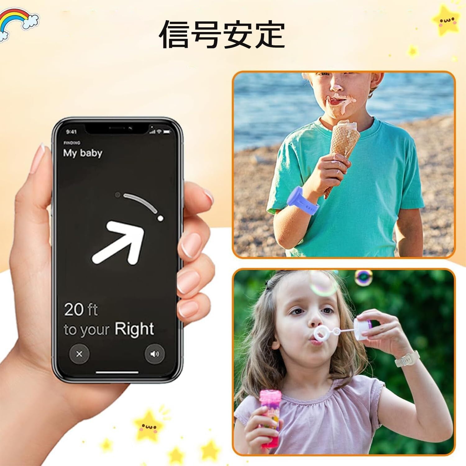 肌に優しい材質:Air Tag互換バンドは良質で柔軟なシリカゲルで作られ、超快適に装着でき、肌にキスし、水洗いでき、子供の男の子と女の子に快適な装着体験を提供する。