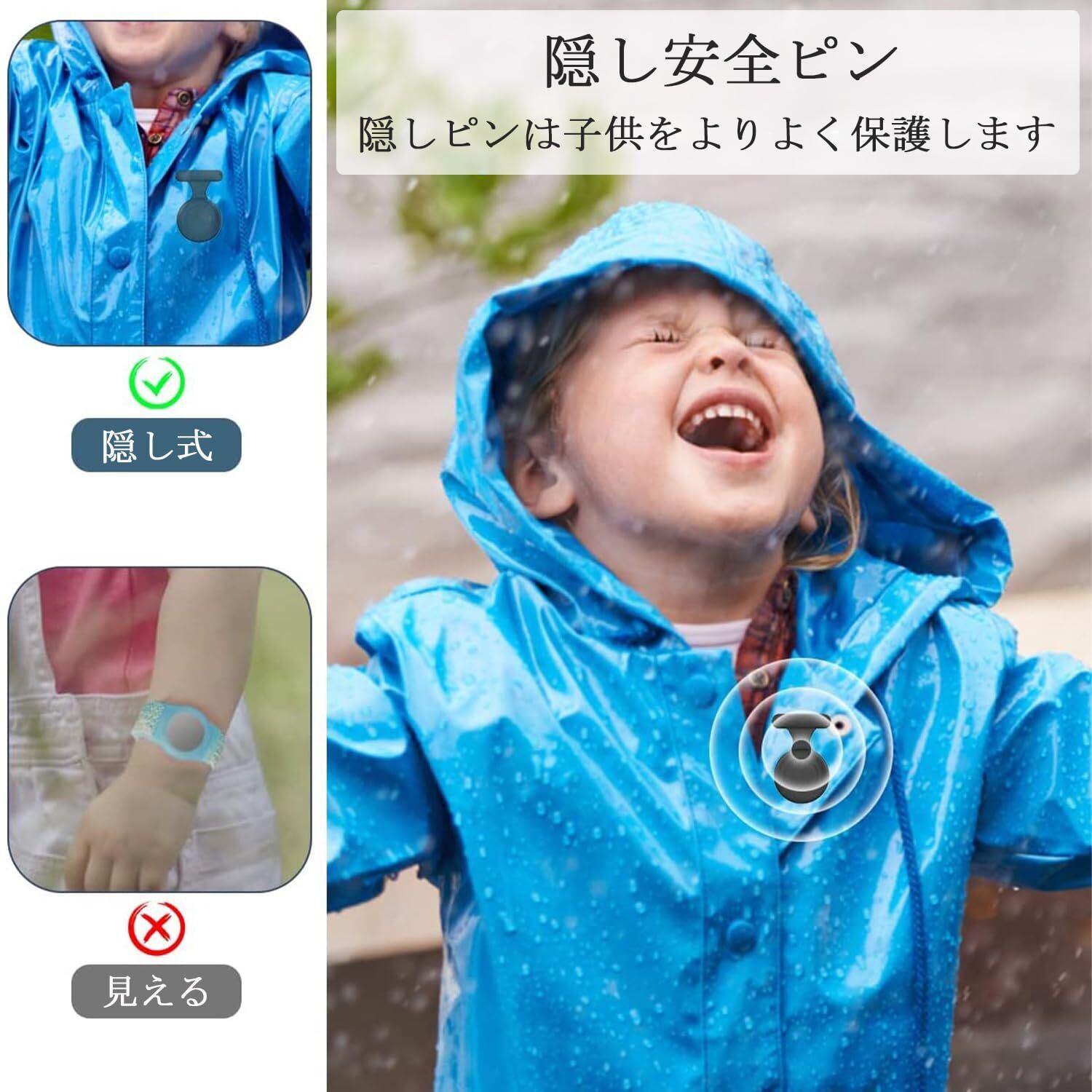 【在庫限り】AirTag互換 ケース 子供用 防水 エアタグ ケース airtag用 ピンバッジ 隠し型 キッズ GPSトラッカーケース AirTag用 カバー シリコン製 全面保護 紛失防止 衝撃吸収 安全ピン付き 子供や高齢者に最適