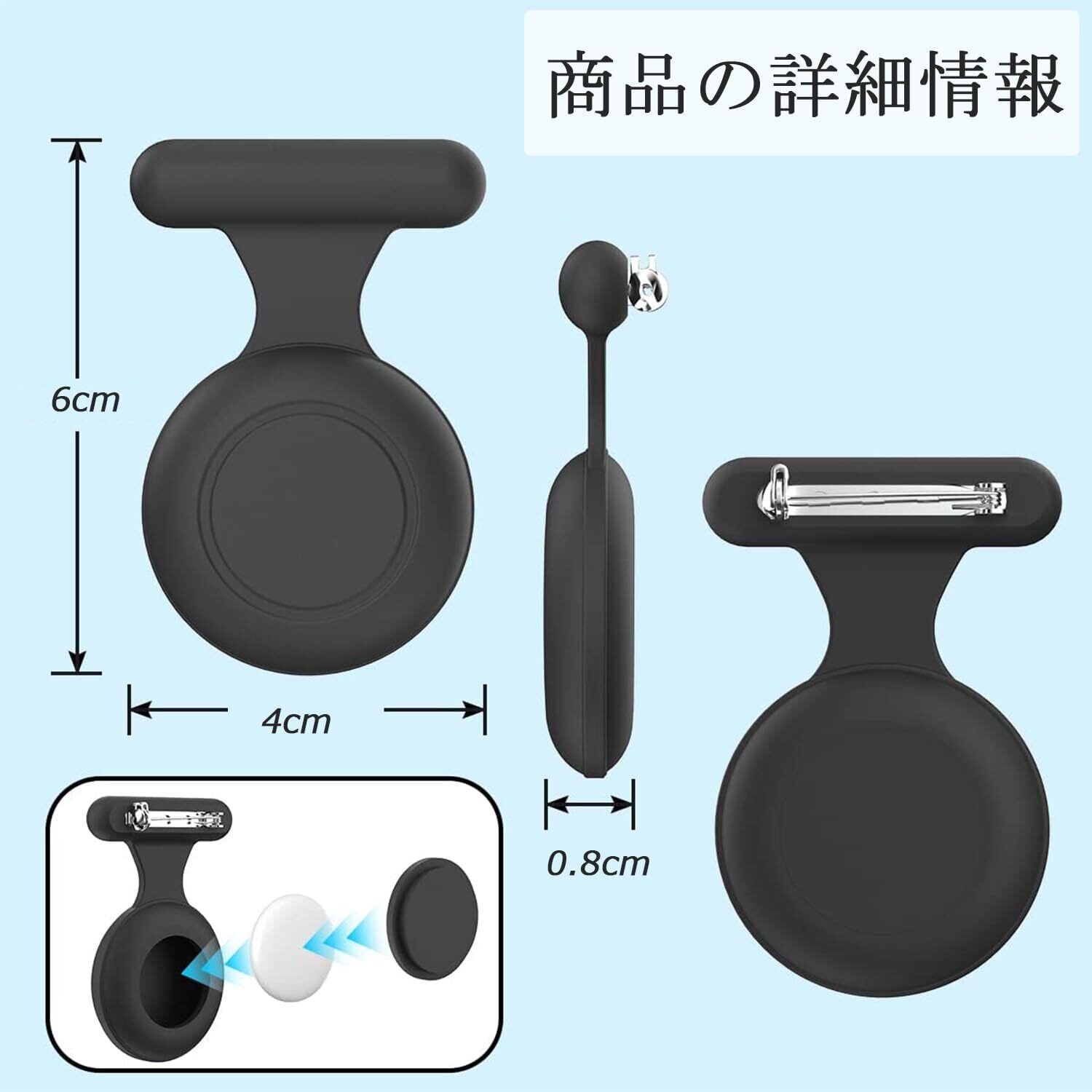 AirTag互換 ケース 子供用 防水 エアタグ ケース airtag用 ピンバッジ 隠し型 キッズ GPSトラッカーケース AirTag用 カバー シリコン製 全面保護 紛失防止 衝撃吸収 安全ピン付き 子供や高齢者に最適