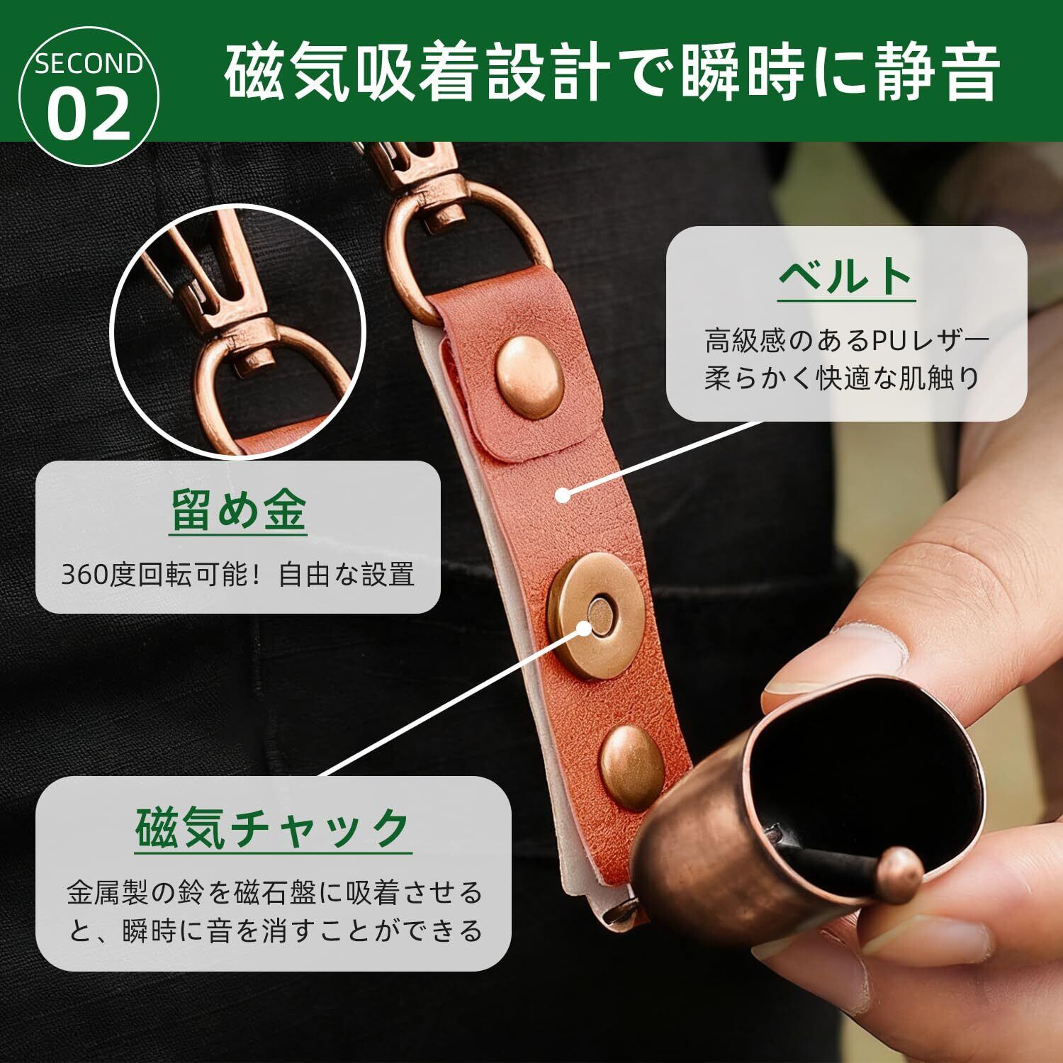 【 マグネット式で静寂を確保】磁石による消音機能で、熊がいない安全なエリアでは音を即座にオフにできます。必要な時だけすぐに音を鳴らせる、利便性の高い設計です。景色に集中したいときや休憩時も静かに過ごせ、アウトドア体験をより豊かにします。