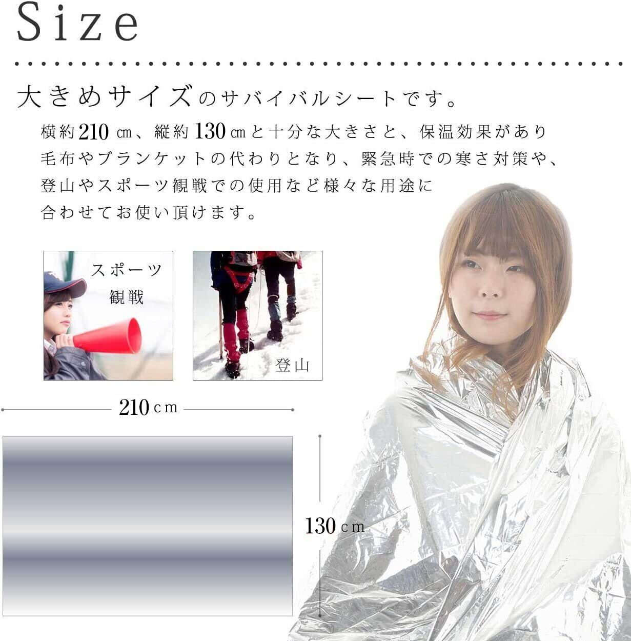 ■【頼れるアウトドアのパートナー!】このアルミシートは、大きめサイズのブランケットとして、非常時やアウトドアシーンにおいて活躍します。体温をしっかりと保持し、寒さから身を守る防寒アイテムとして、また緊急時の備えに欠かせません。理想的なパートナーです!