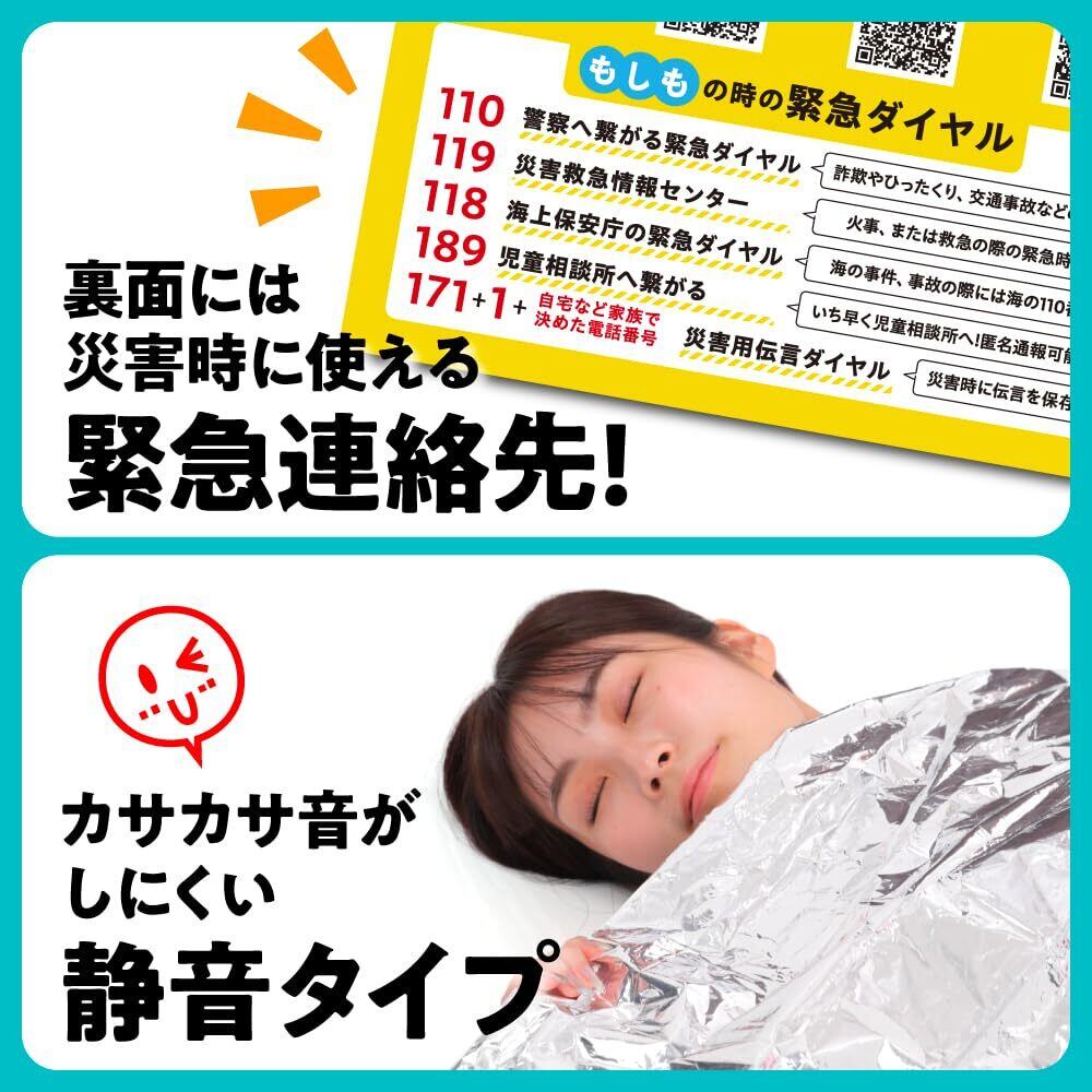 ■【優れた保温性能!】特殊なアルミ素材を使用しており、体温を効率的に反射。急な冷え込みや悪天候から身体をしっかり保護します。サイズは約130×210cmで、広げれば毛布やマットとしても活用できるので、非常時だけでなく日常でも役立つ一品です。