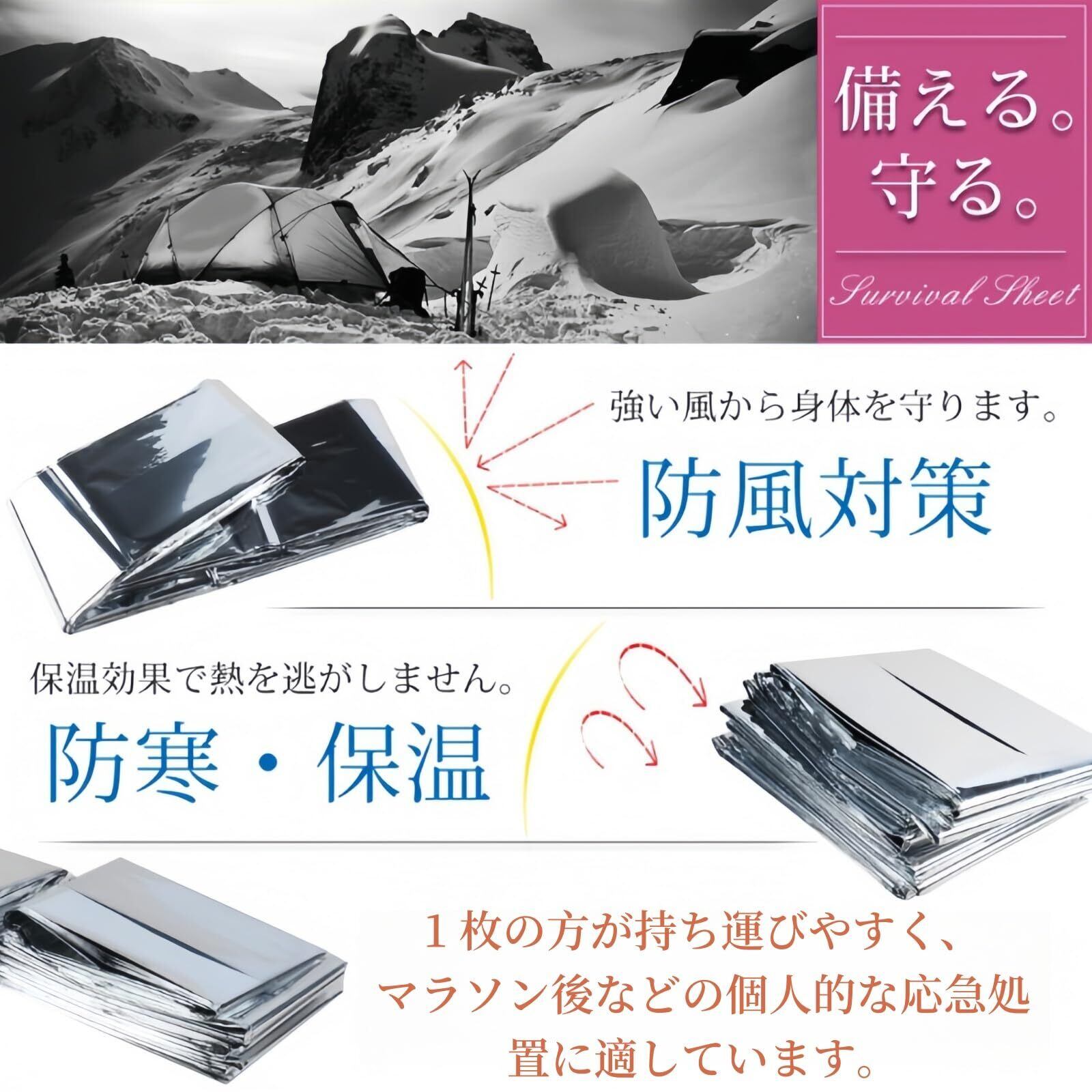 ■【緊急時に欠かせないサバイバルシート!】このサバイバルシートは、しっかりとした断熱機能を備えており、災害時やアウトドアシーンで大活躍するアイテムです!特に非常時には、体温をしっかりと保持し、寒さから身を守る強力なパートナーです。