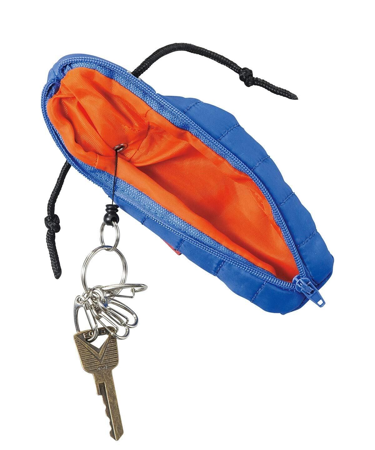 キーリール付きで便利な寝袋モチーフのキーケース。カラビナ型フック付き。キーリール付き4連キーフック付き。
