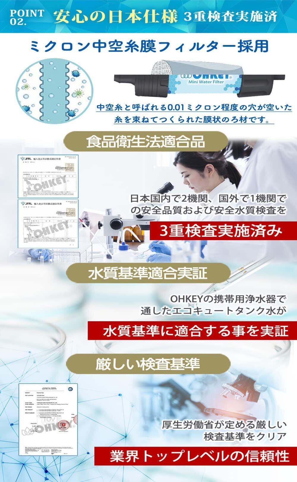 ■【信頼の日本正規品!】この「OHKEY 携帯浄水器」は日本企業による企画・開発・管理がされており、安心してご使用いただけます。万が一の際にもサポート体制が整っているため、初めてご利用される方でもご安心いただけます。
