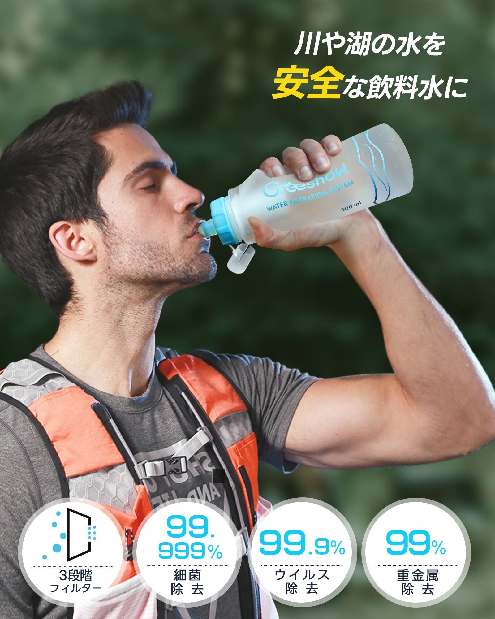 【新着商品】GreeShow 浄水ボトル 水筒 防災用浄水 直飲み 携帯浄水器 簡易濾過器 アウトドア 登山 キャンプ用品 ボトル 防災グッズ 災害 サバイバル 軽量コンパクト 再利用可能 【日本正規品】 GS-286