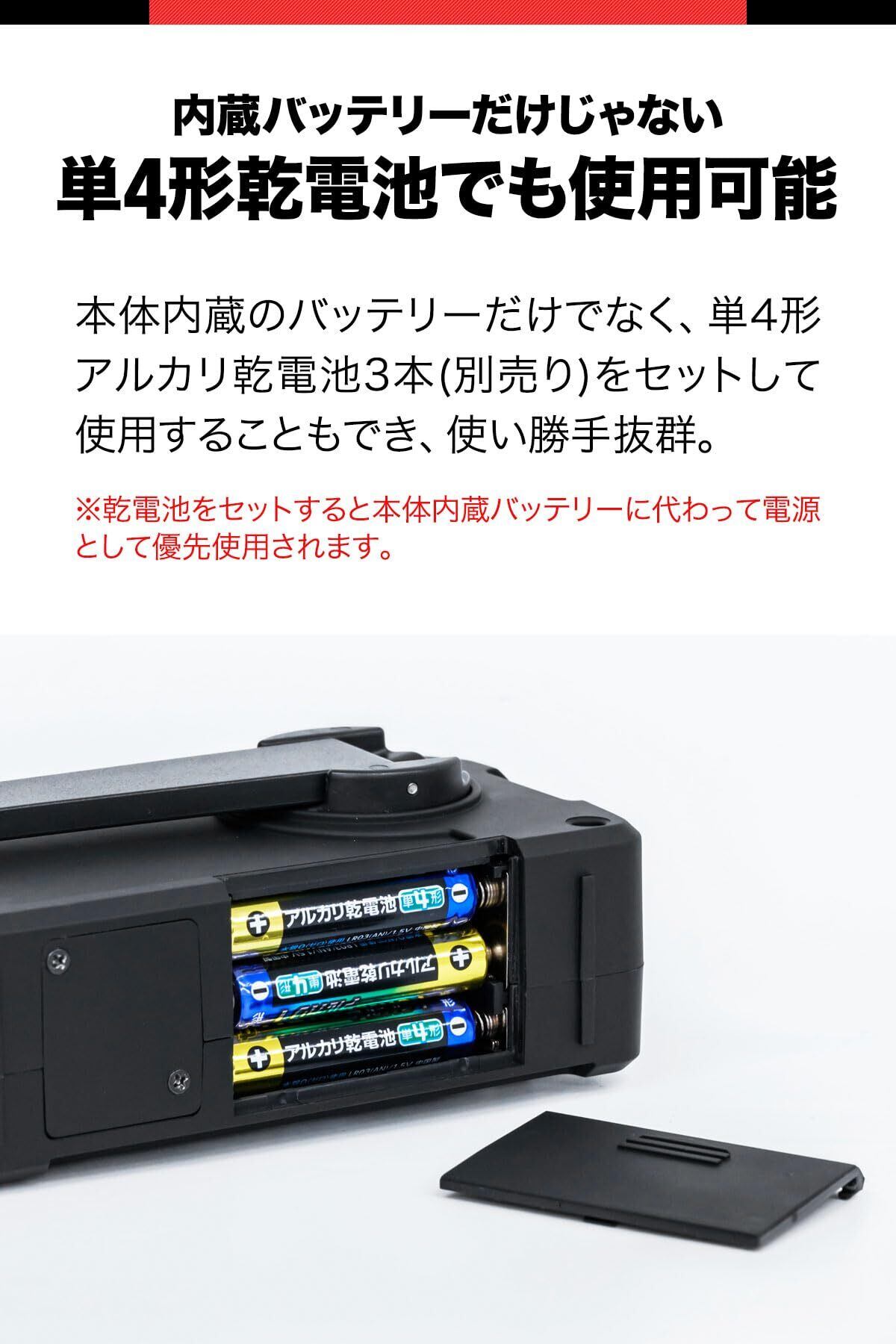 ■【豊富な充電方式で快適安心!】ソーラーや手回し充電、USB充電など、多彩な充電方法を備えています。さらに、2000mAhの大容量バッテリーを内蔵し、必要な時に安心して使用可能です。乾電池(別売)でも動作するため、非常時でも心強い存在です。