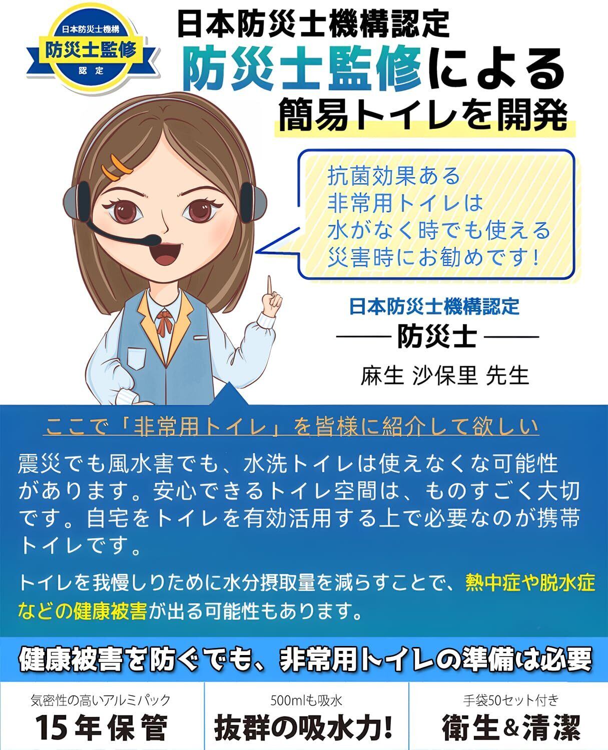 簡易トイレ【防災士監修・抗菌・消臭】 防災トイレ 60回分 非常用トイレ 緊急時 防災グッズ 地震/断水/災害用 凝固剤 携帯トイレ ポータブルトイレ 長期保存 大便/小便対応 災害対策 防災用品