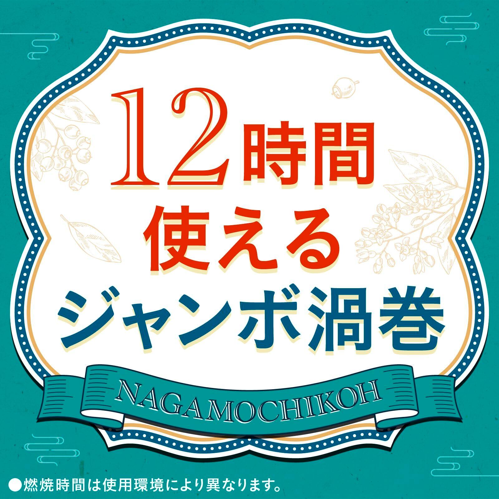 約12時間、安定した効果を長時間発揮するジャンボ渦巻香(燃焼時間は使用環境により異なります。)