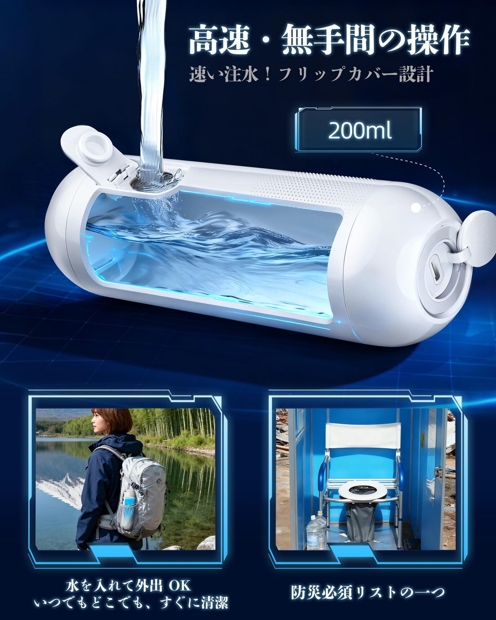 携帯ウォシュレット 充電式 うおしゅレット 電動 USB-C おしり洗浄器 ケイタイうぉしゅれっと 強力 ポータブルビデ 簡易トイレ ハンディ 200ml水タンク容量 折りたたみ式 水圧強い 自宅 アウトドア 旅行 災害時の備え 緊急時に非常用 キャンプ 出張 外出先 通勤 ハンディウォシュレット