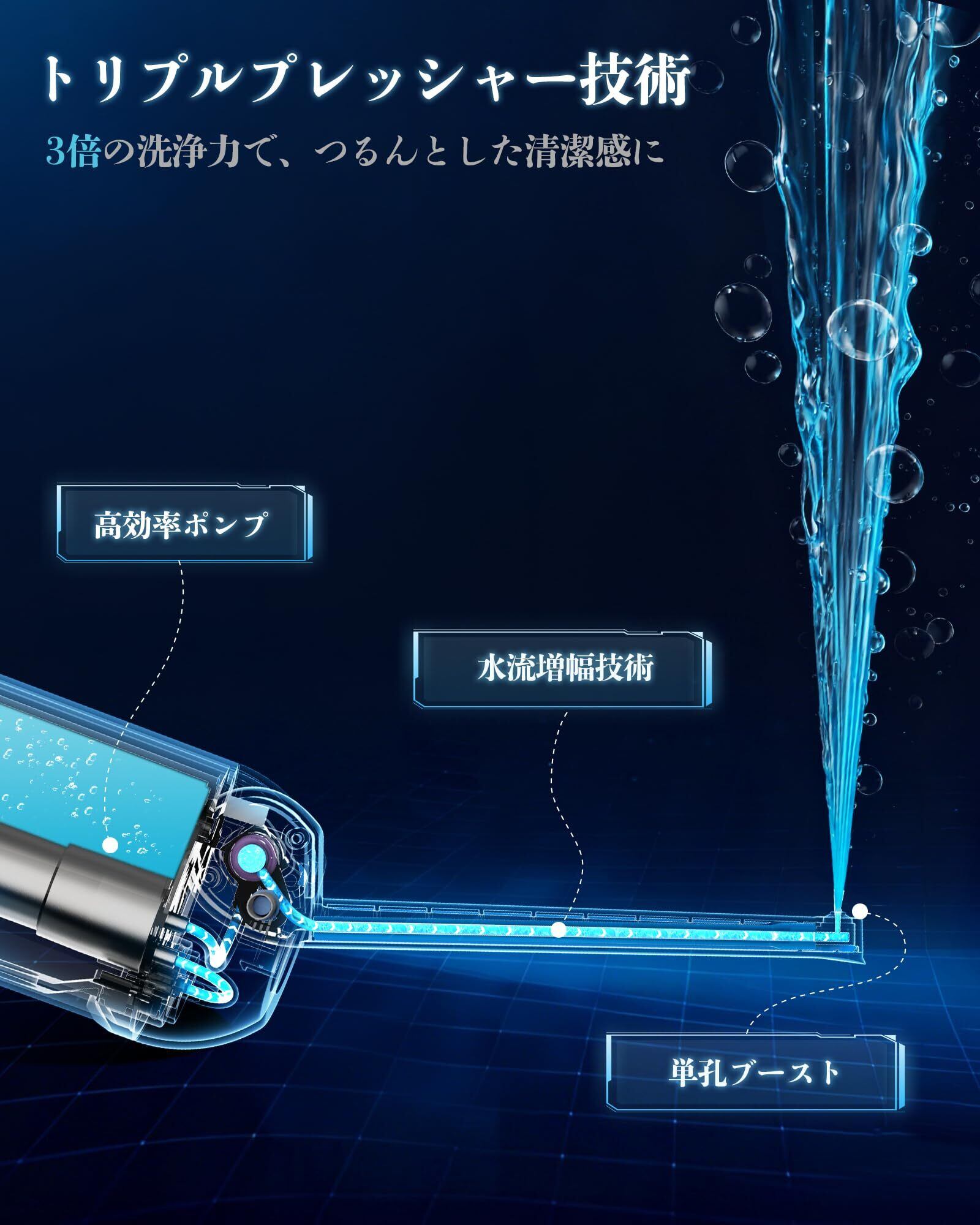 【最高水圧】単孔ブースト技術、高効率ポンプ、水流増幅技術を搭載した電動高水圧おしり洗浄器で、最強の洗浄スプレーを体験してください。200mlの容量は洗浄効果を保ちつつ節水に貢献。2段階の調節可能な水圧で、お好みに合わせたマッサージのような心地よい洗浄が楽しめます。