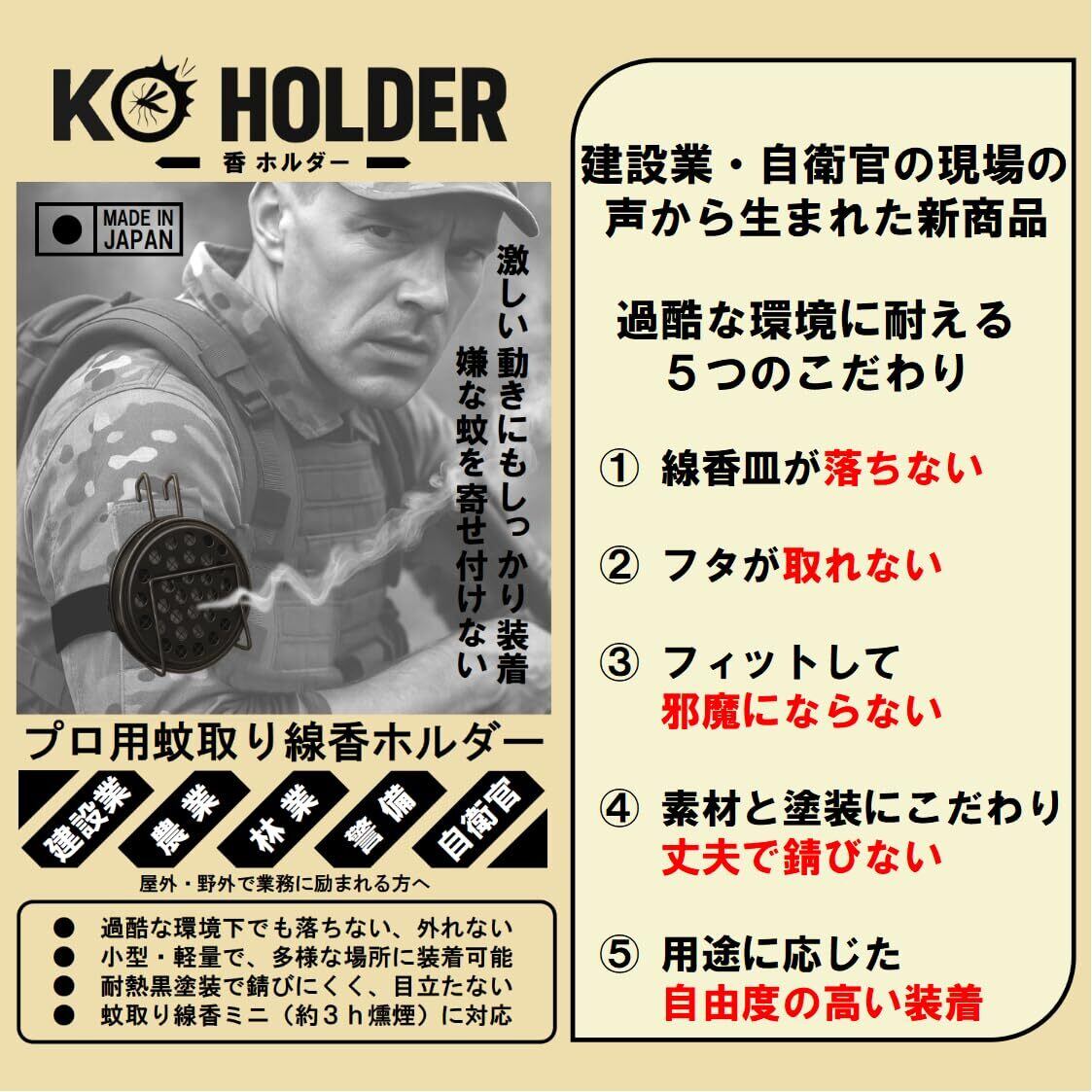 【在庫限り】【2025】日本製 熊よけにも プロ用 蚊取り線香ホルダー 【ミニサイズ専用】 携帯 吊り下げ フック付き 落ちない 外れない 丈夫 火災防止 作業現場 職人用 アウトドア キャンプ レジャー 釣り 登山 ゴルフ 携帯用虫よけ マットブラック 無骨デザイン【KO HOLDER(香ホルダー/コーホルダー)】