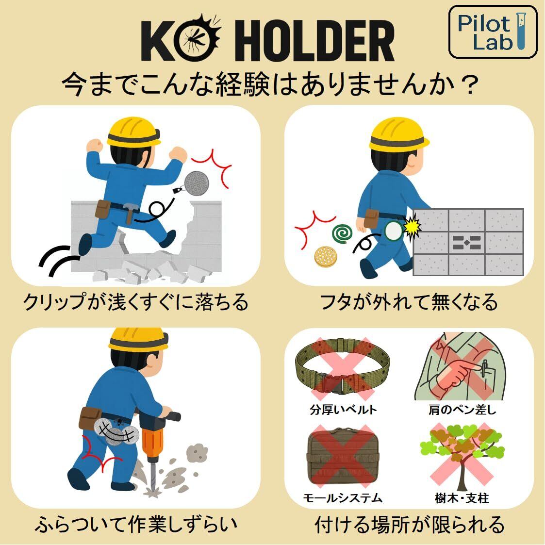 この機会に「KO HOLDER」を手に入れ、快適なアウトドアや仕事の時間を過ごしましょう!安心感をもたらす心強い存在として、あなたの生活をサポートします。