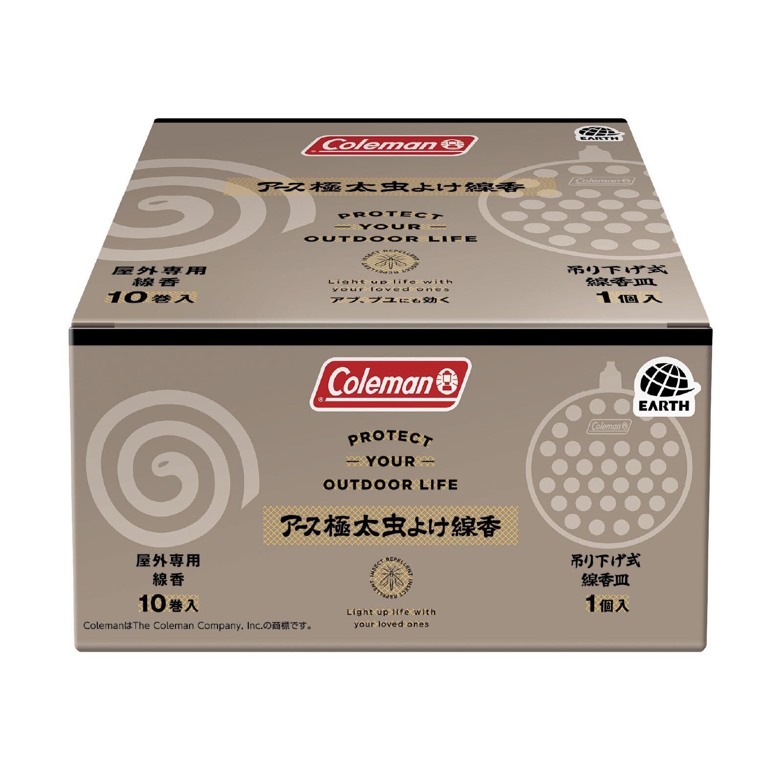 【特別価格】アース渦巻香 コールマン アース極太 虫よけ線香 10巻箱入 吊り下げ式 線香皿付 キャンプ アウトドア 屋外用 アブ ブユ 虫対策