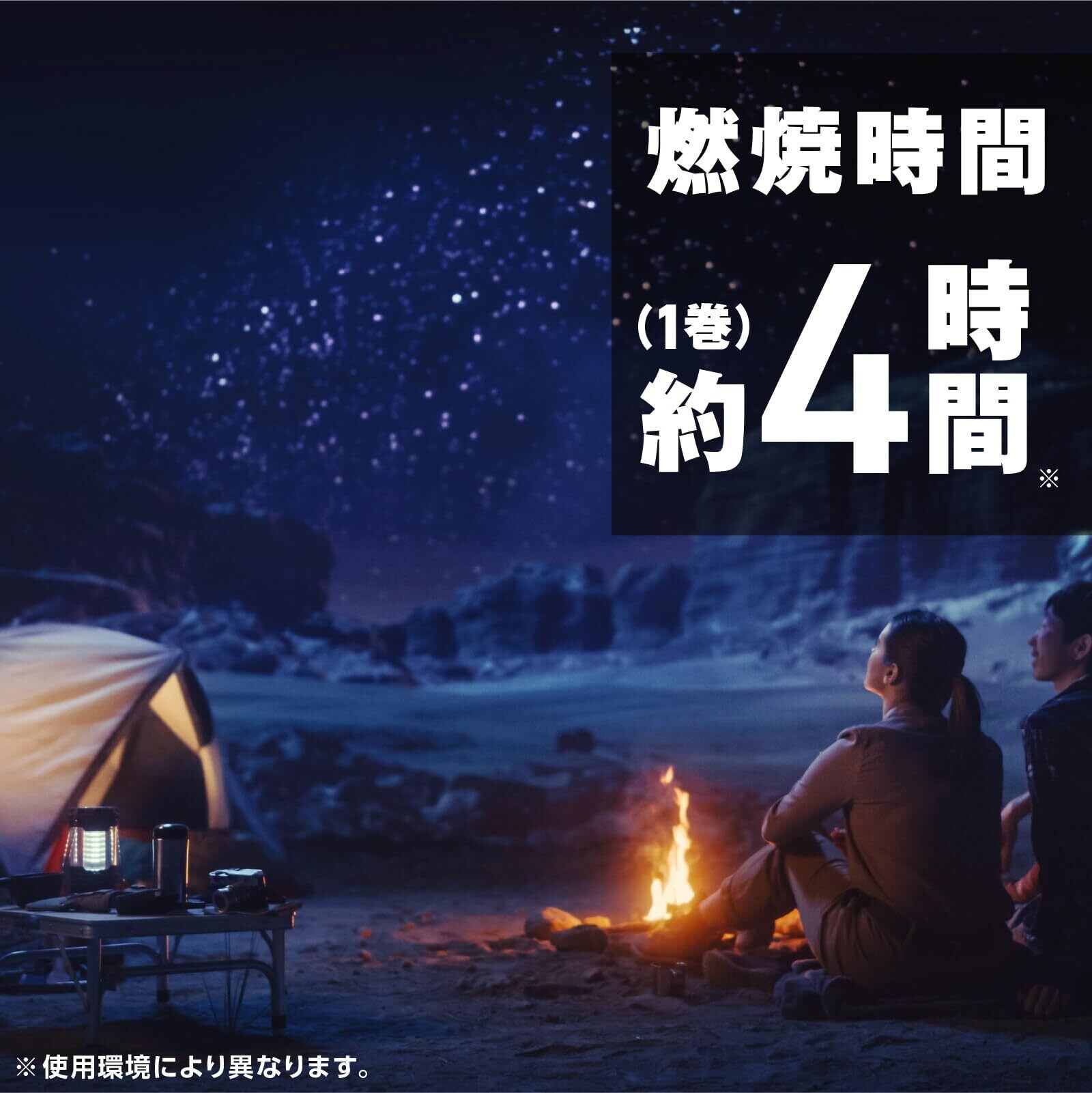 ●1巻の燃焼時間は約4時間です。(使用環境により異なります。)