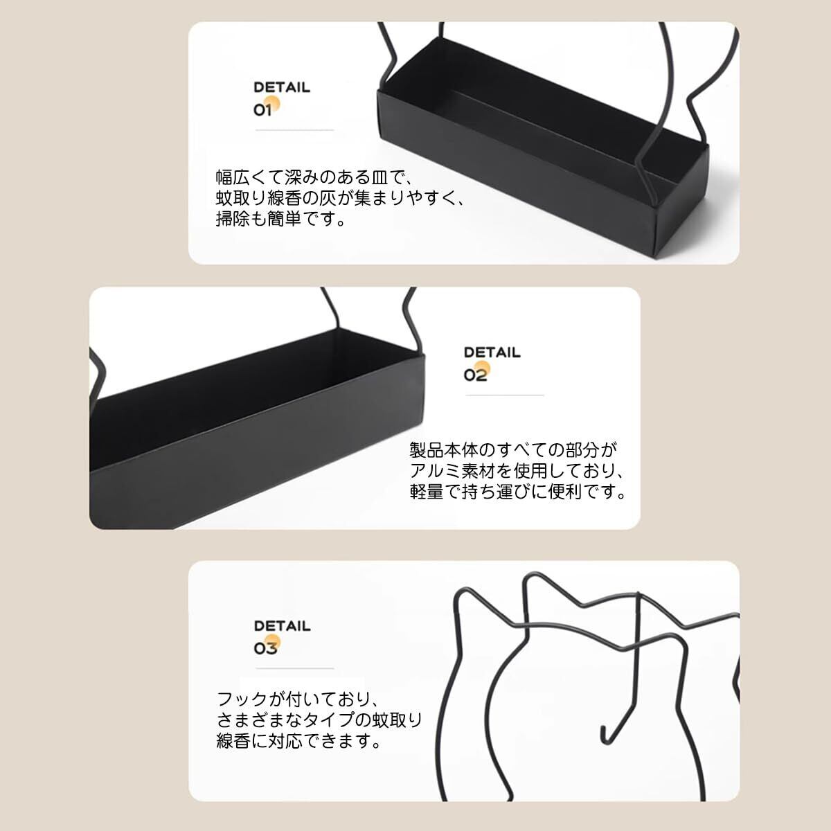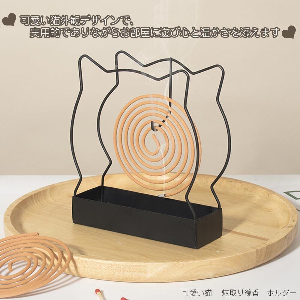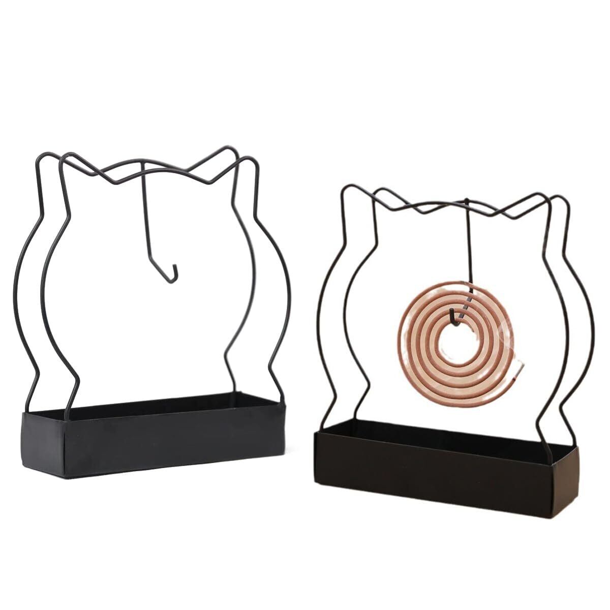 蚊取り線香ホルダー 2個セット 吊り下げ式 アウトドア キャンプ 防虫 多用途デザイン 軽量 屋内/屋外兼用 アルミ鉄合金製 釣り 登山 玄関 持ち運び便利 可愛い おしゃれ(可愛い猫 2個セット ブラック)