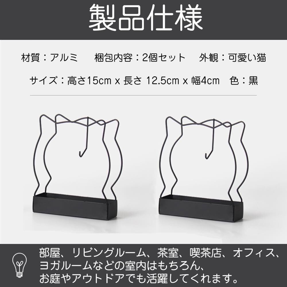 【特別価格】蚊取り線香ホルダー 2個セット 吊り下げ式 アウトドア キャンプ 防虫 多用途デザイン 軽量 屋内/屋外兼用 アルミ鉄合金製 釣り 登山 玄関 持ち運び便利 可愛い おしゃれ(可愛い猫 2個セット ブラック)