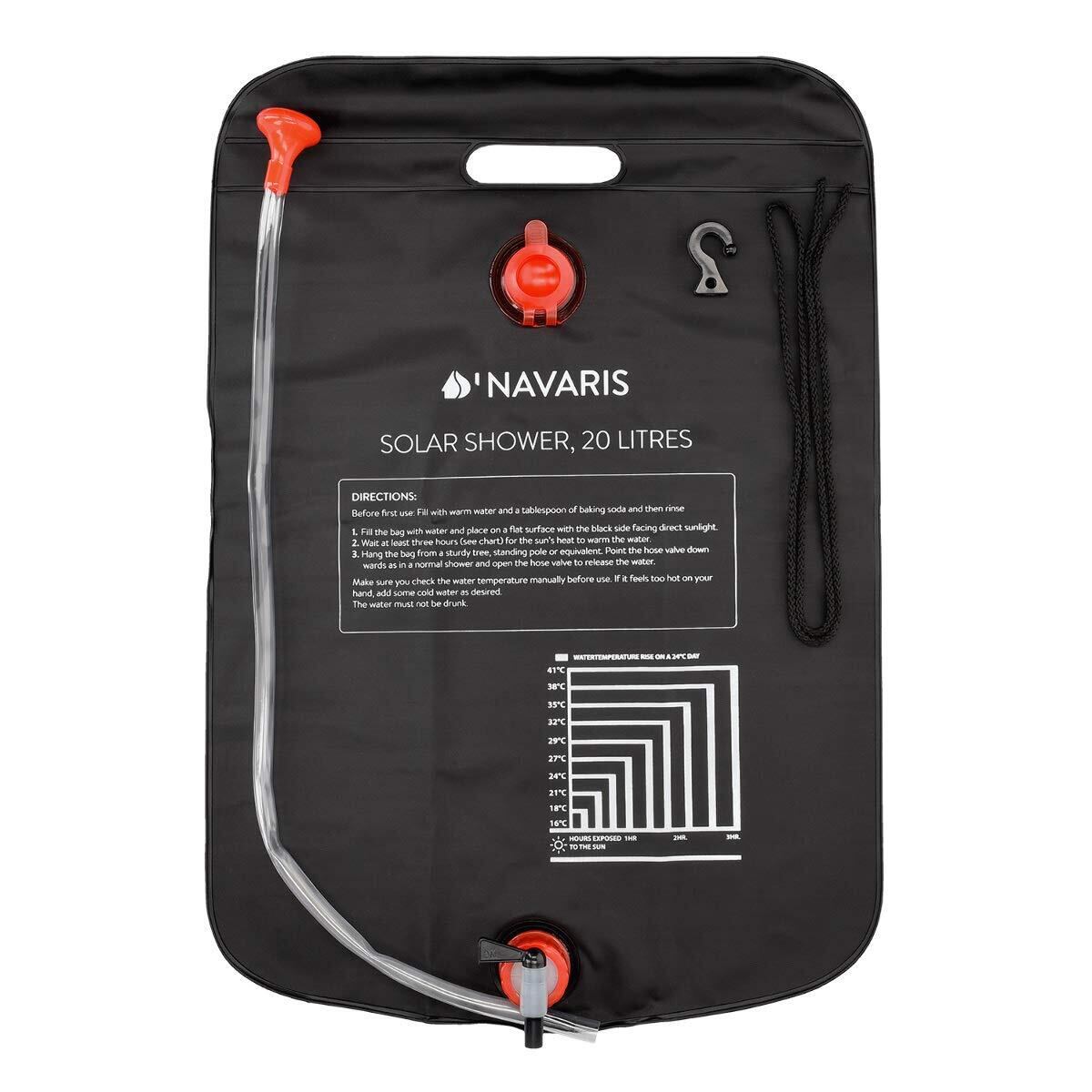 Navaris ポータブルシャワー 簡易シャワー 容量20L - ソーラー 温水 携帯式 水タンク キャンプ - サーフィン 海水浴 アウトドア 洗車 災害 - 600x410mm