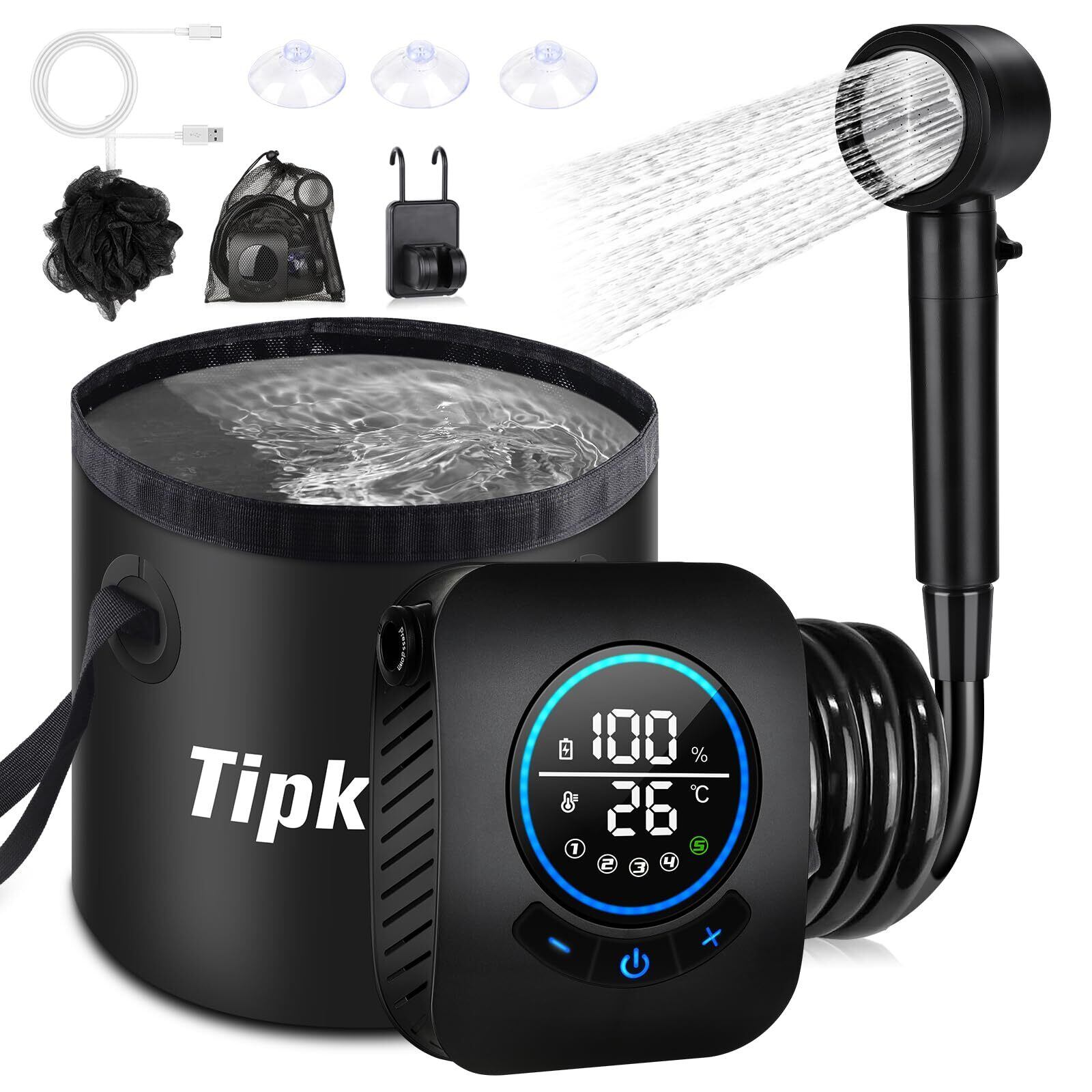 【数量限定】ポータブルシャワー Tipkook 【USB充電式 8000mAh】キャンプ 電動シャワー 20L折りたたみ式バケツ付 5段階のスピード調整 デジタル画面 水流量無段階調節 収納袋付き 簡易シャワー 浴槽から汲み上げ 海水浴 サーフィン 旅行 水遣り 洗車 アウトドア 植物潅水 ペットシャワー 防災 停電時用 屋内 屋外 軽量