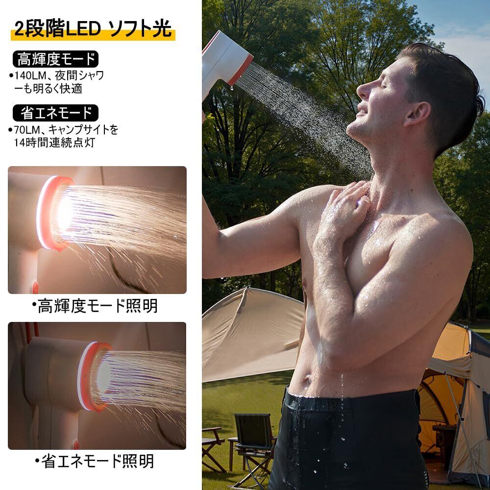 ■【便利な照明機能付き!】バイブ照明ライト機能が搭載されており、夜間の利用時でも安心。暗い場所でも明るく照らし、快適なシャワータイムを提供します。アウトドアでの使用や夜のキャンプファイヤーの際にも活躍します。
