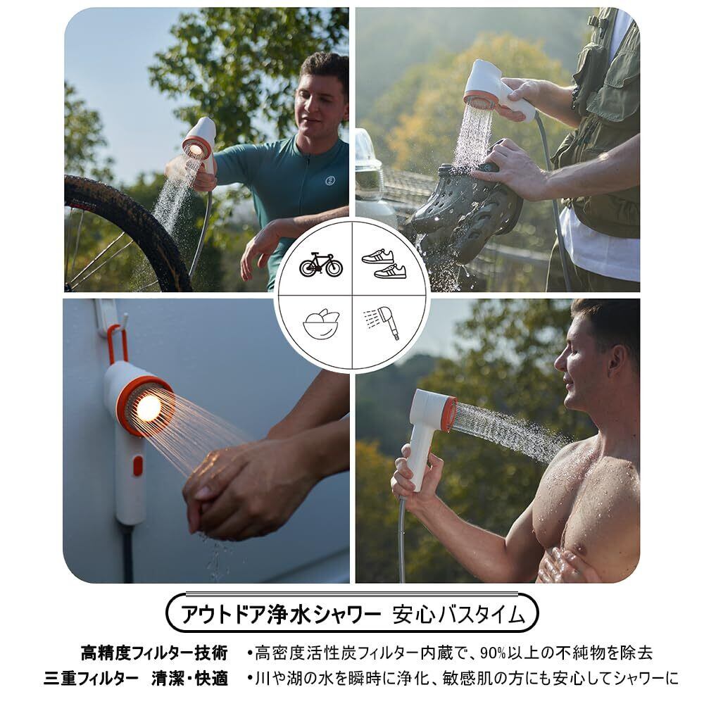 ■【優れたパフォーマンスを実現!】この「SoomloomポータブルVIBEバイブシャワー」は、強力なパワーを持ち、アウトドアでの使用に最適です。活性炭フィルターを搭載しており、いつでも清潔でおいしい水を提供します。充電式で、手軽に持ち運びができるため、キャンプや旅行の際に便利です。