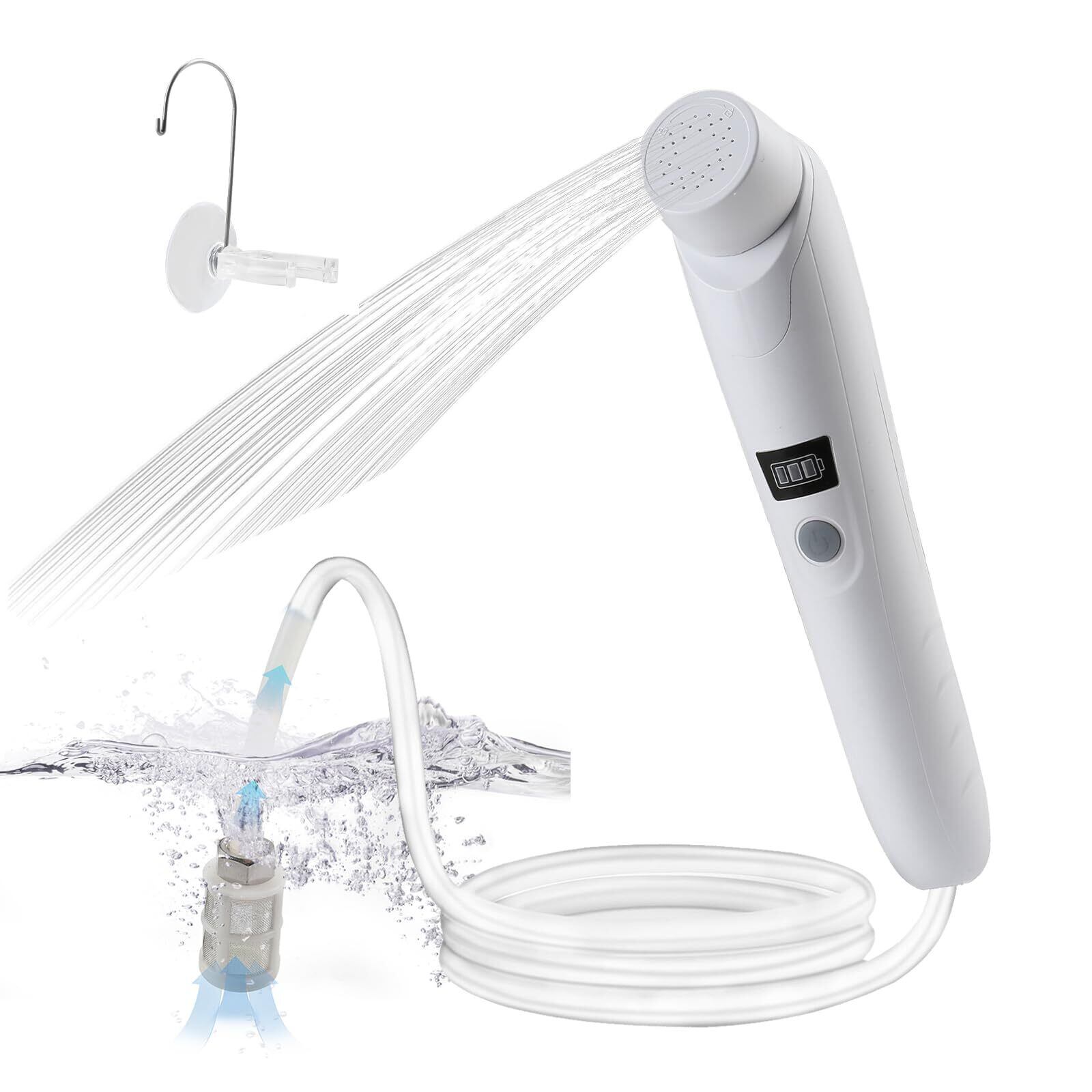 AZXJCポータブルアウトドアシャワー、ハンドヘルド電動シャワー、IPX 6防水、USB充電、バッテリー内蔵、コンパクトで携帯性、アウトドアキャンプ、ビーチシャワー、トレッキング、ペット入浴に適している