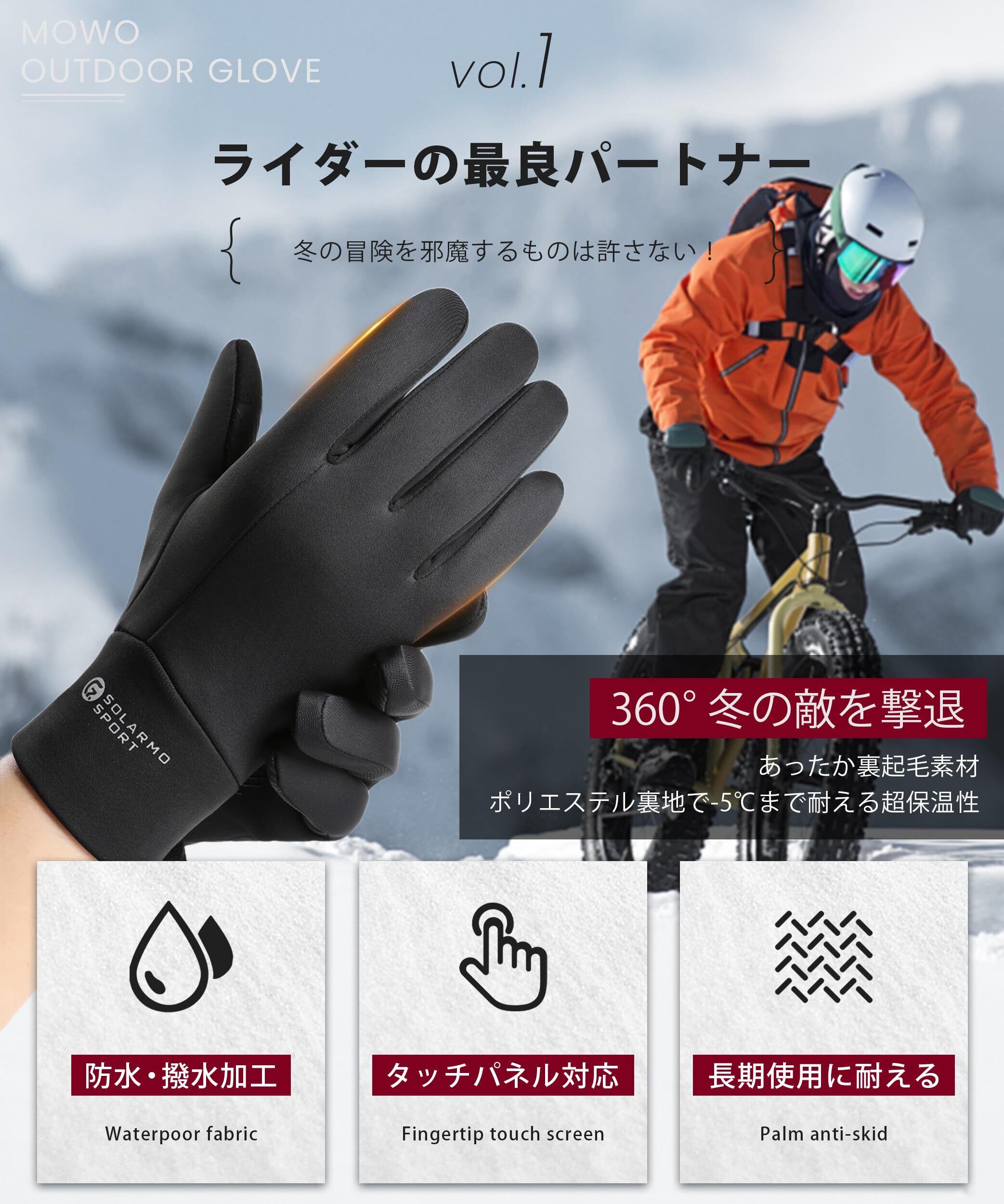 [MOWO] グローブ 防寒手袋 メンズ 冬 【あったか裏起毛・スマホ対応・滑り止め手袋】バイクグローブ タッチパネル対応 撥水加工 防風 紛失防止結び付け 人間工学 黒 登山 釣り スキー 通勤 通学 作業 男女兼用