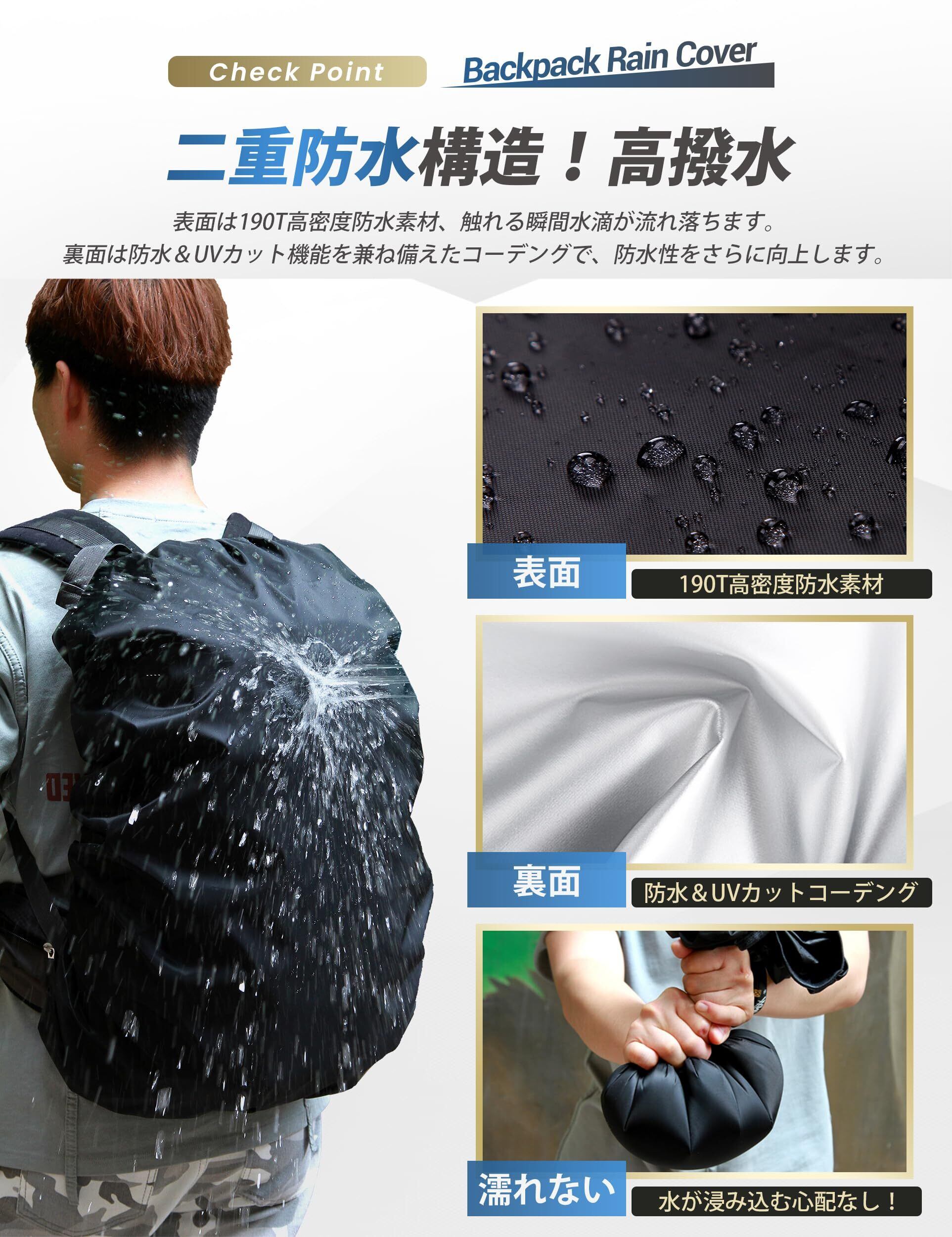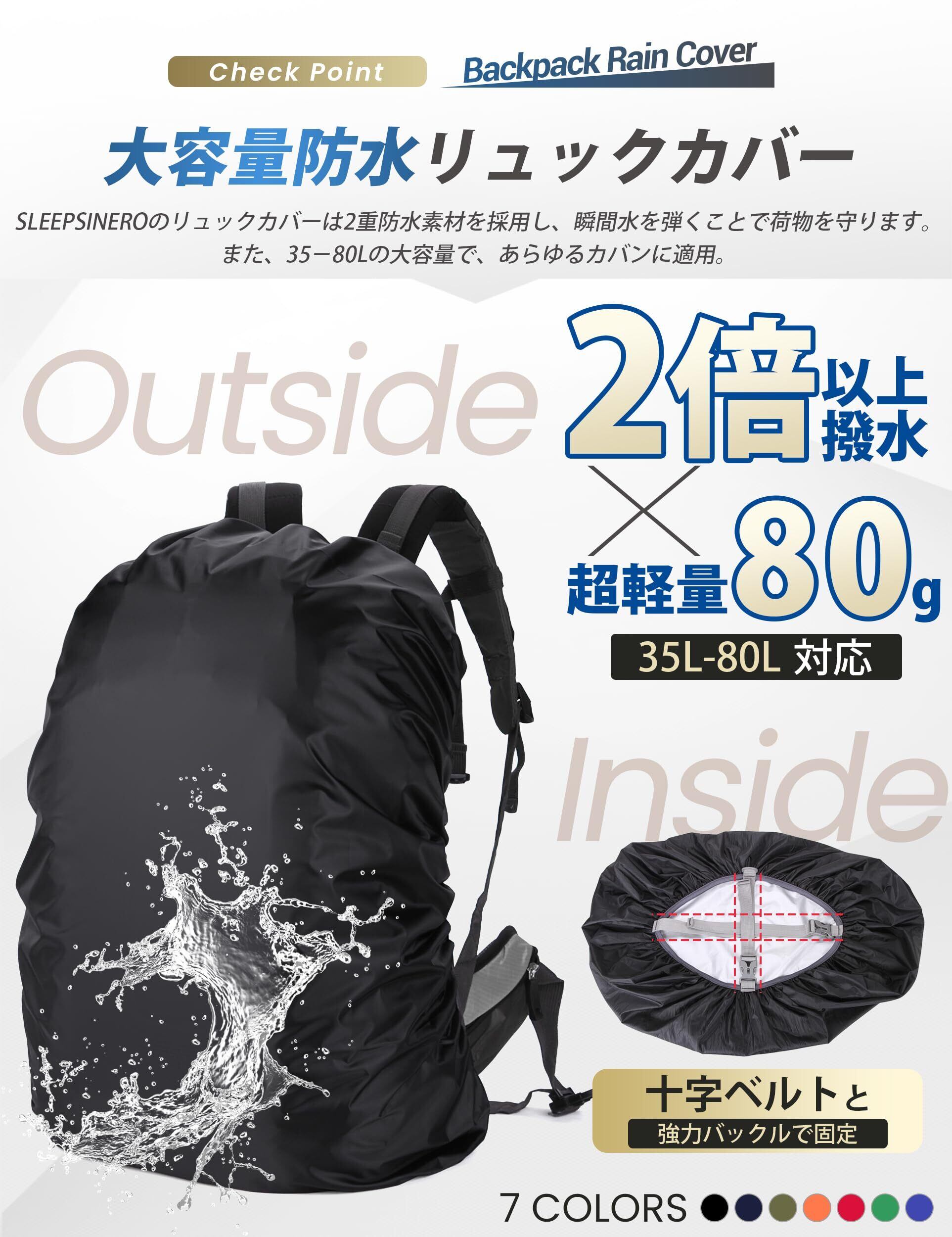 [SLEEPSINERO] 【2倍以上撥水・超軽量80g】 リュックカバー 防水 レインカバー 梅雨対策 落下防止 35-80L