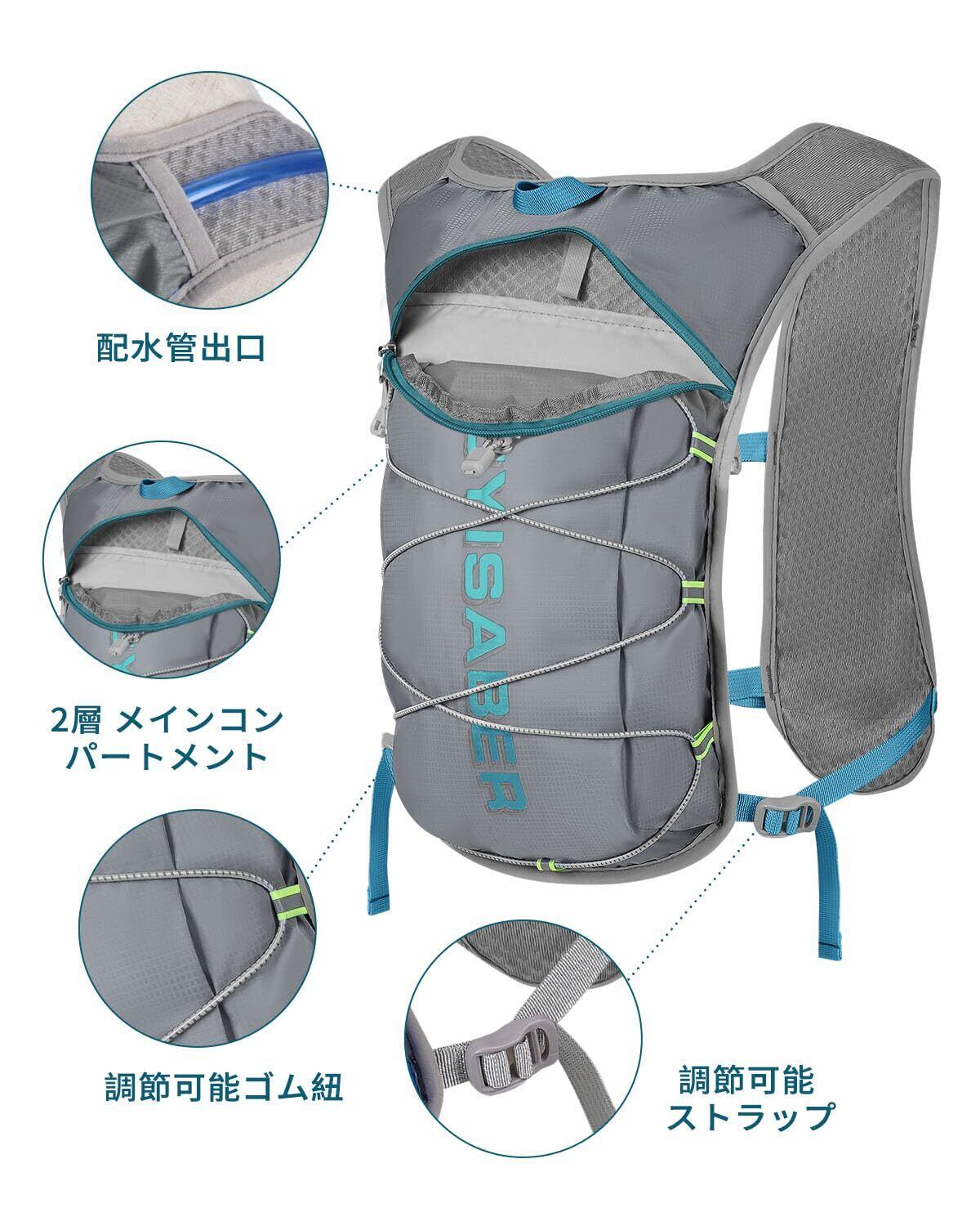 超軽量・万能ポケット: 超軽量設計ランニングバックパックの重量はわずか140グラムで、サイズ37*20cmです。スポーツ用品を一気に携帯できる設計されたサイクリングバッグは収納性が抜群です!両サイドのストラップに500mlの水ボトルやキャンディ・チョコレートを収納でき、ジッパー付きのポケットは携帯電話を収納でき、後の2層メインコンパートメントに2L給水袋ホ儿ダ一を収納できます。