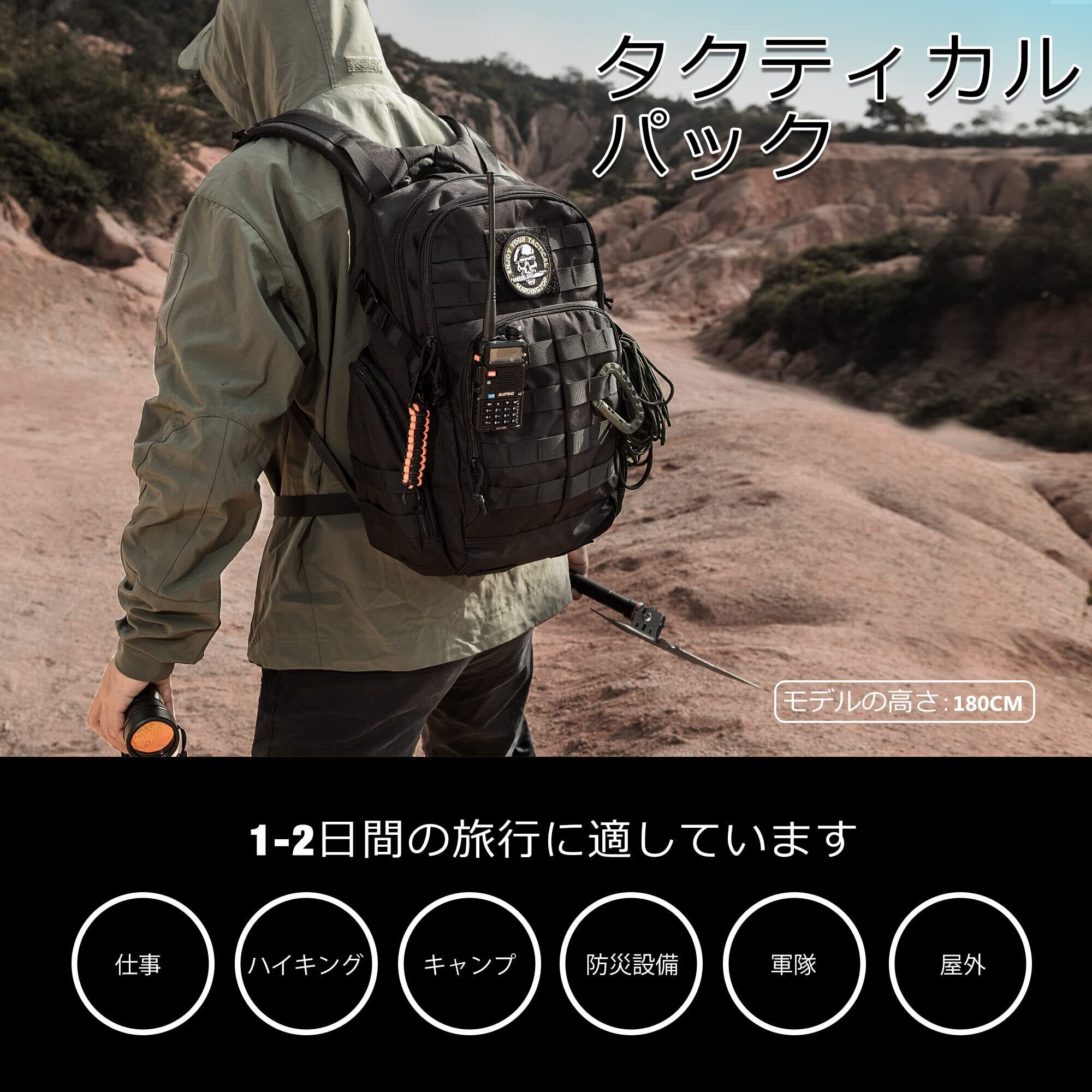 ■【タクティカルデザインでスタイリッシュ!】Molleシステムに対応したこのバックパックは、追加のポーチやギアを簡単に取り付けられるため、カスタマイズ性も抜群です。自分好みにアレンジして、あなたのスタイルを演出できます。