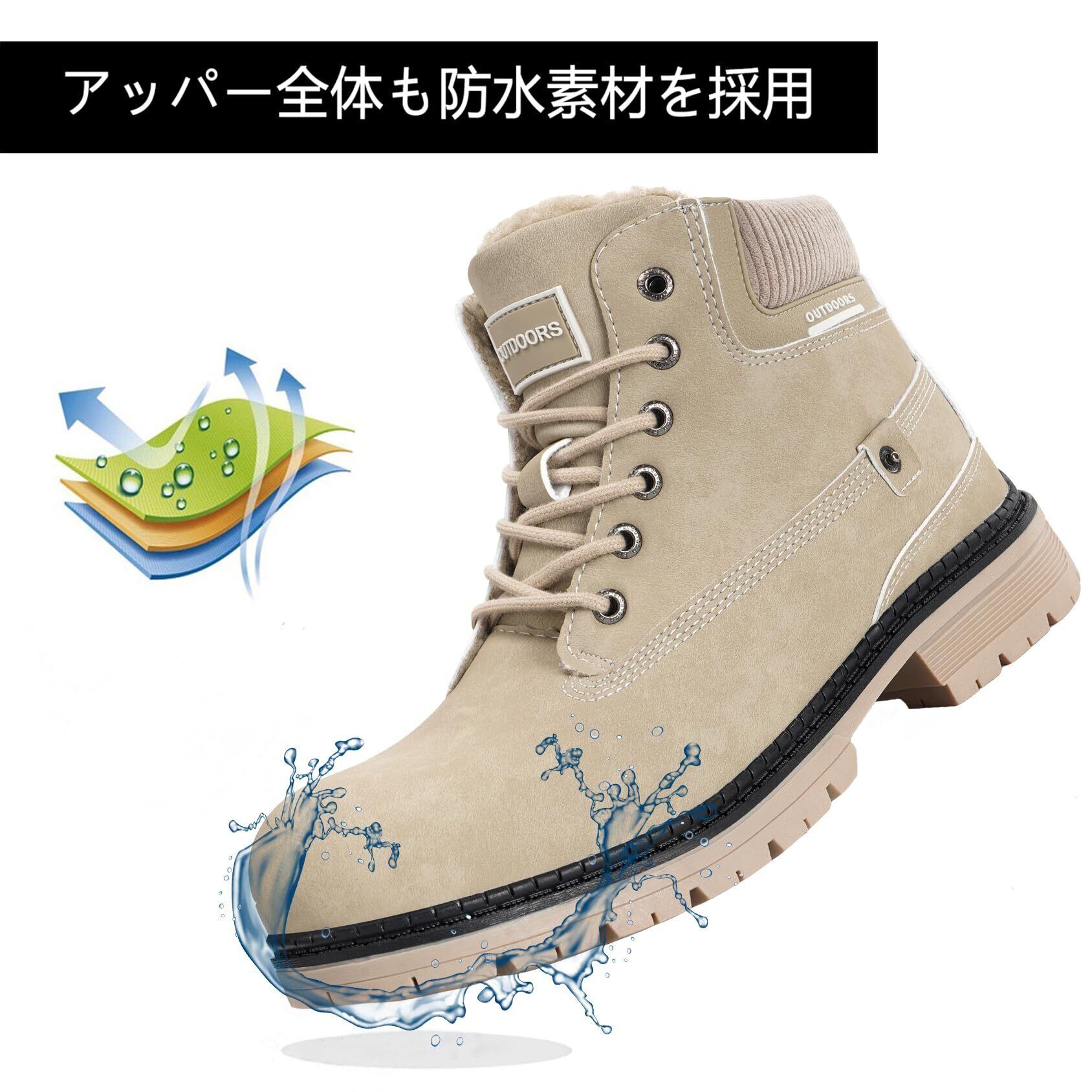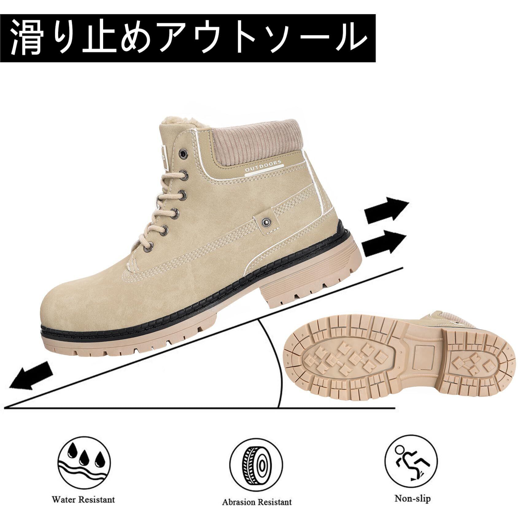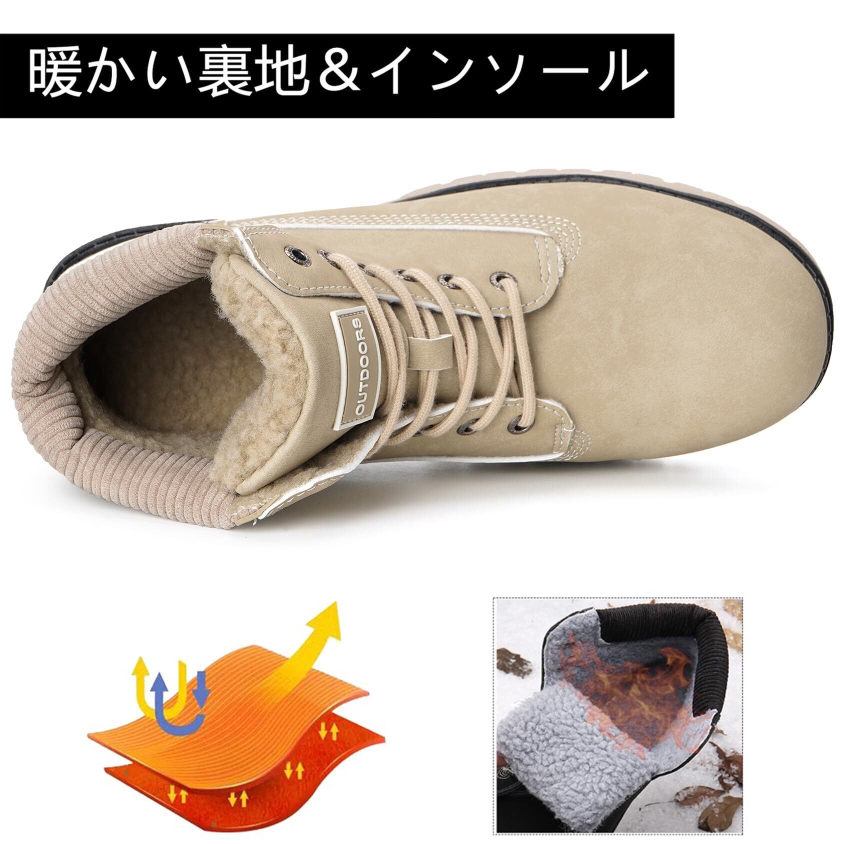 【防寒性】ハイキングシューズの内部には高密度の暖かい毛皮の裏地付き、冷たい空気を遮断し、とても柔らかくて、足を優しく保温できます。履き心地とてもいいです。