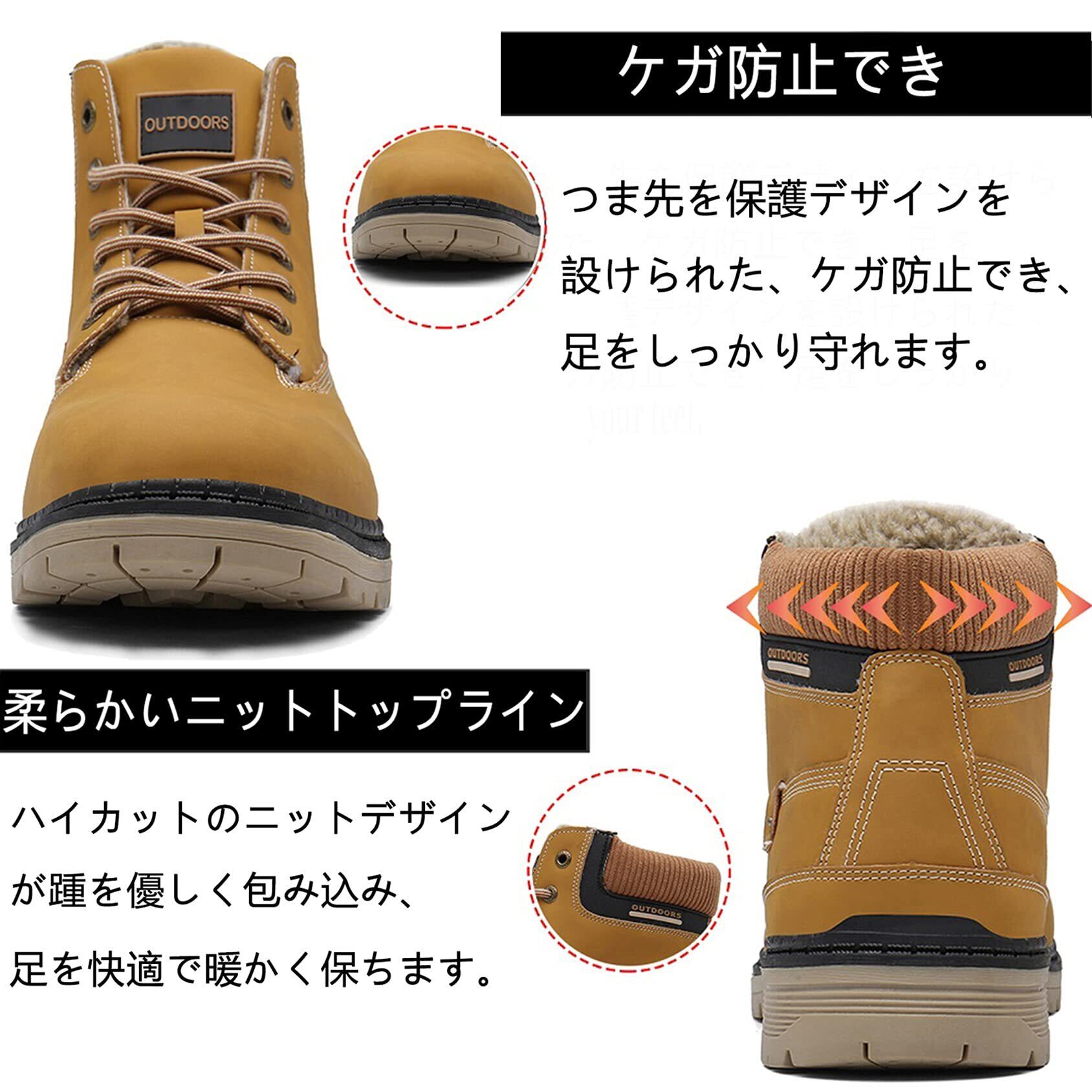 【防寒性】ハイキングシューズの内部には高密度の暖かい毛皮の裏地付き、冷たい空気を遮断し、とても柔らかくて、足を優しく保温できます。履き心地とてもいいです。