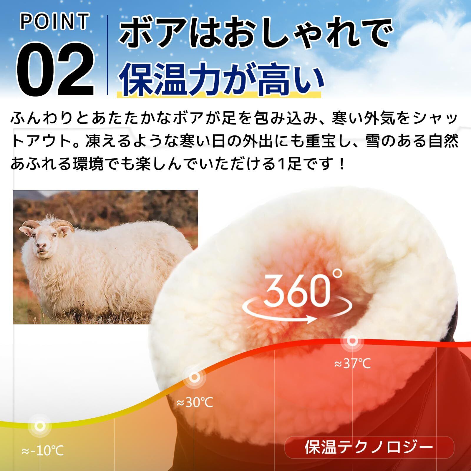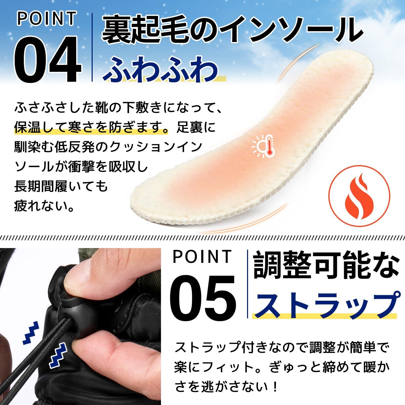 ■【優れた保温性で心地よい暖かさ】内部は、柔らかく厚手のボア素材を使用し、足を優しく包み込んで暖かさを保持します。冷気はシャットアウトし、高い保温性で快適に冬を過ごせます!