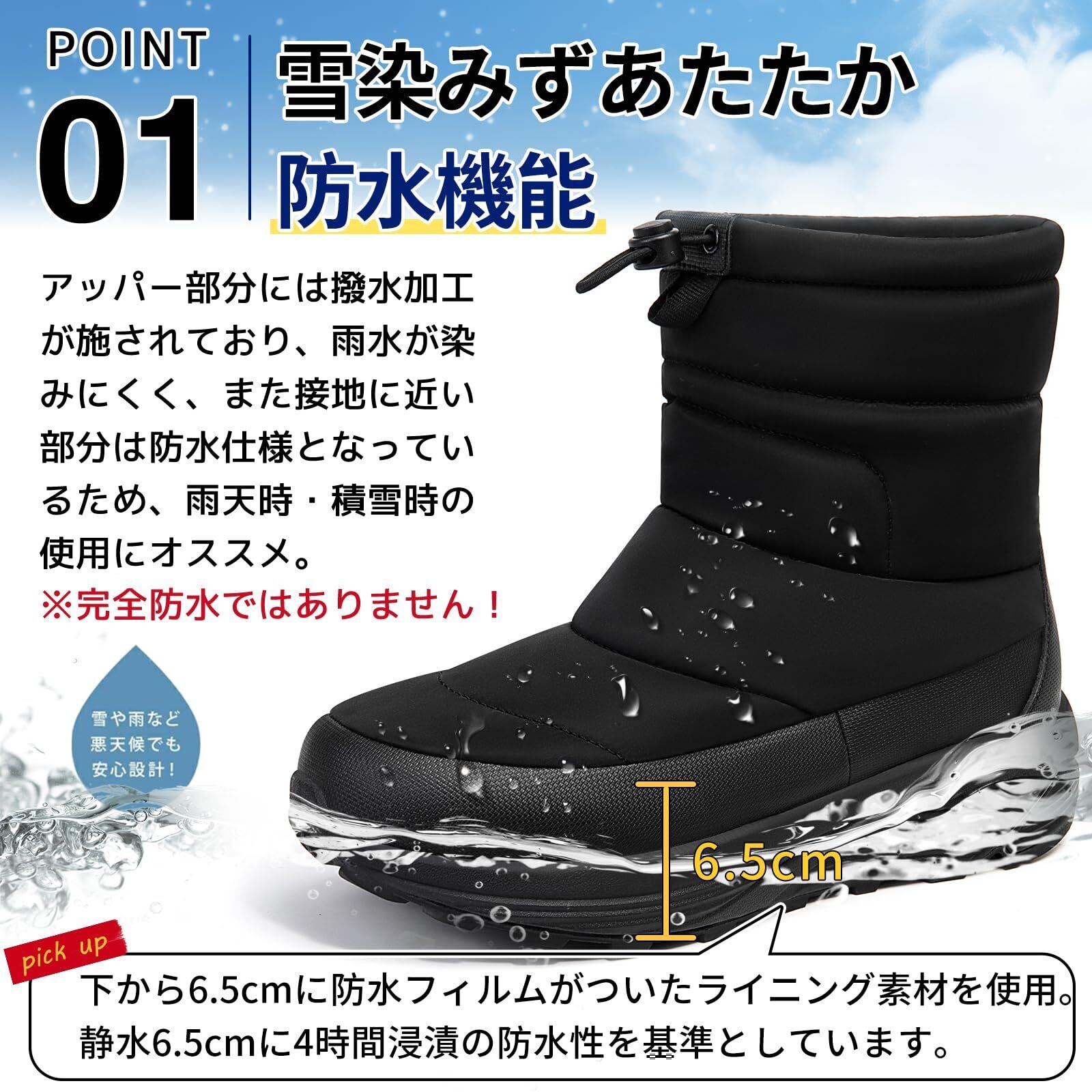 ■【高機能な防水設計】特別に開発された防水素材使用により、雪や水分から足元を完全に保護します。急な天候の変化にも安心して対応できるため、安心してアウトドアを楽しめます!